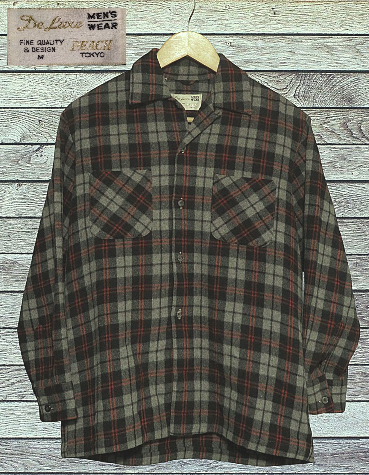 ✅️ 当時物 Mサイズ De Luxe PEACH TOKYO ジャパン ビンテージ オープンカラーシャツ ウールシャツ チェックシャツ Japan Vintage