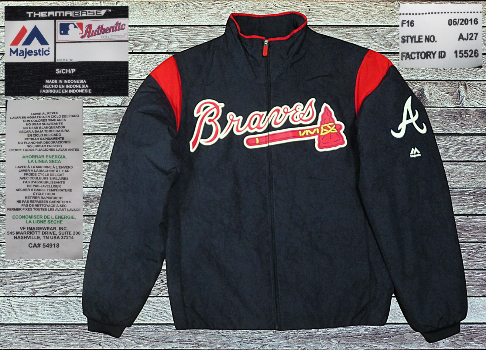 ✅️ 高級モデルS/CH/P Majestic マジェスティック MLB アトランタブレーブス 軽量 ウォームアップ ジャケット 保温性 メジャーリーグ Atlanta Braves ネイビー 野球