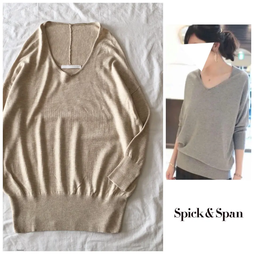 ◯スピックアンドスパン V首 抜き襟 デザイン ハイゲージ ニット