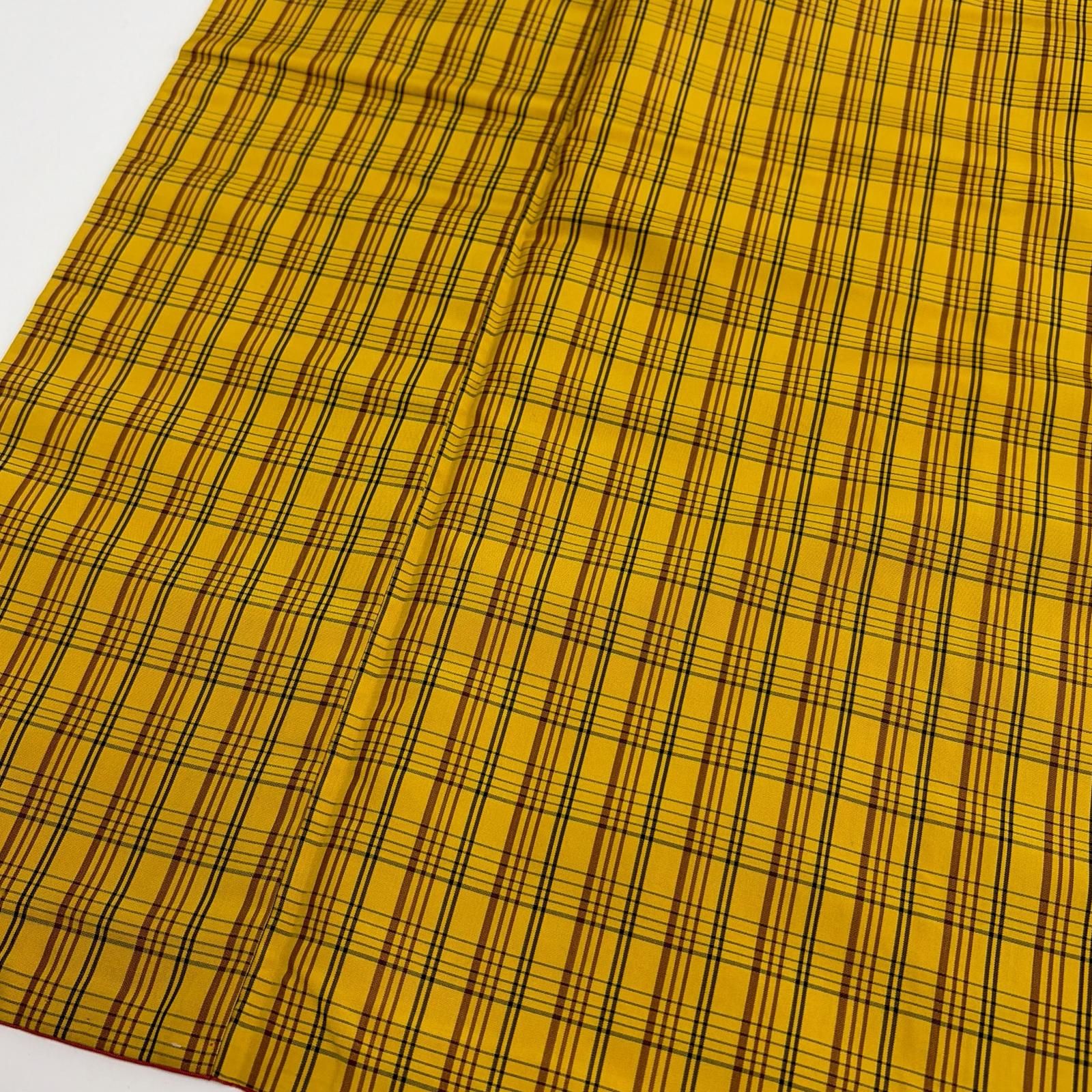 黄八丈 正絹 格子 平織 粋なデザイン 袷 着物 MK-7130