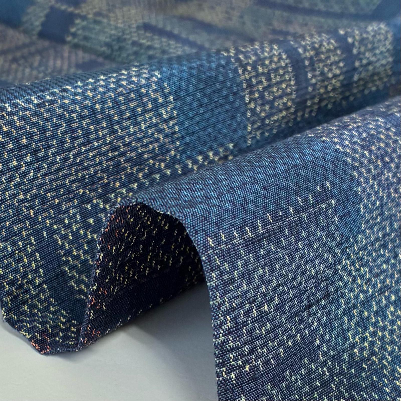 結城紬 正絹 藍染め 粋な絣 しつけ糸 袷 着物 MK-7134