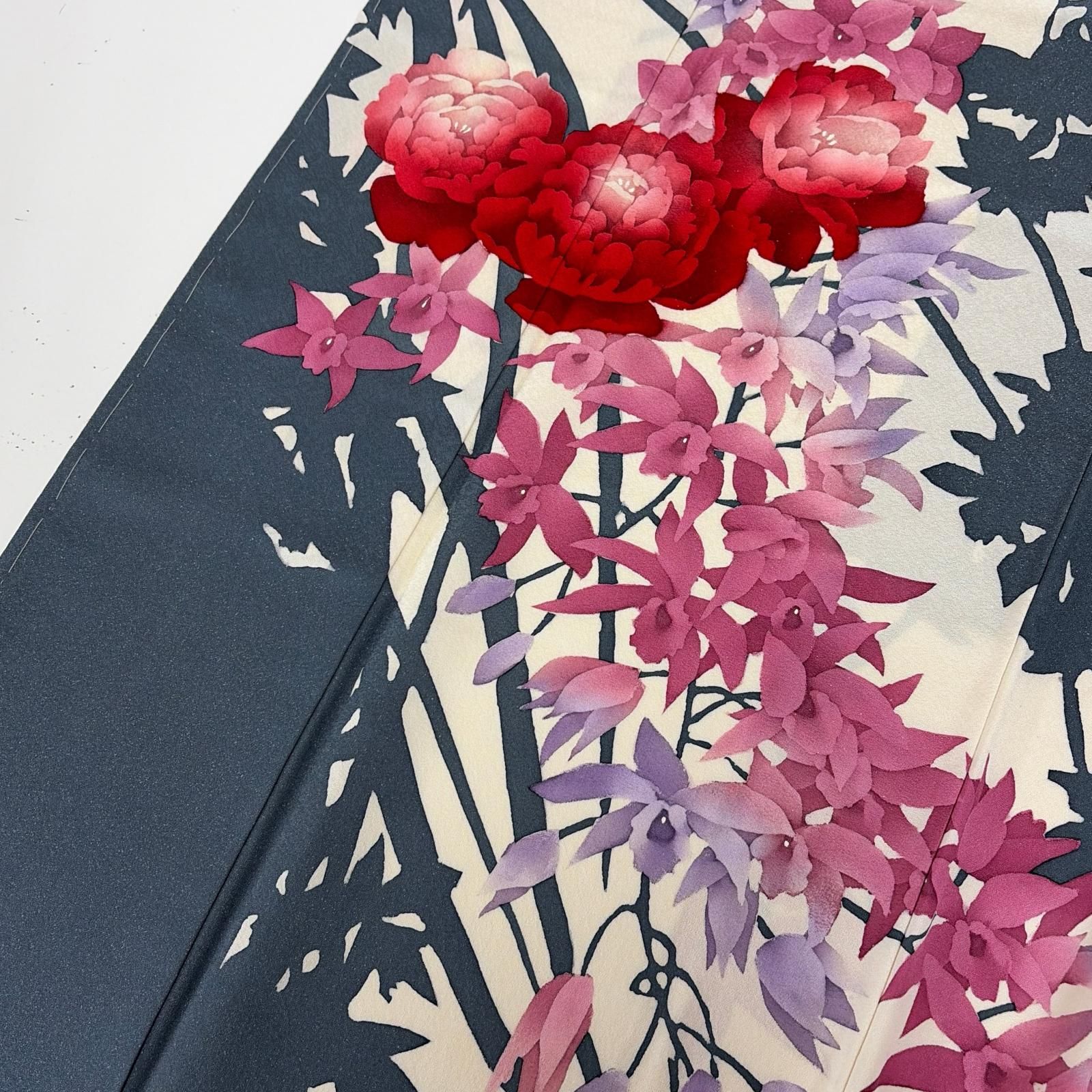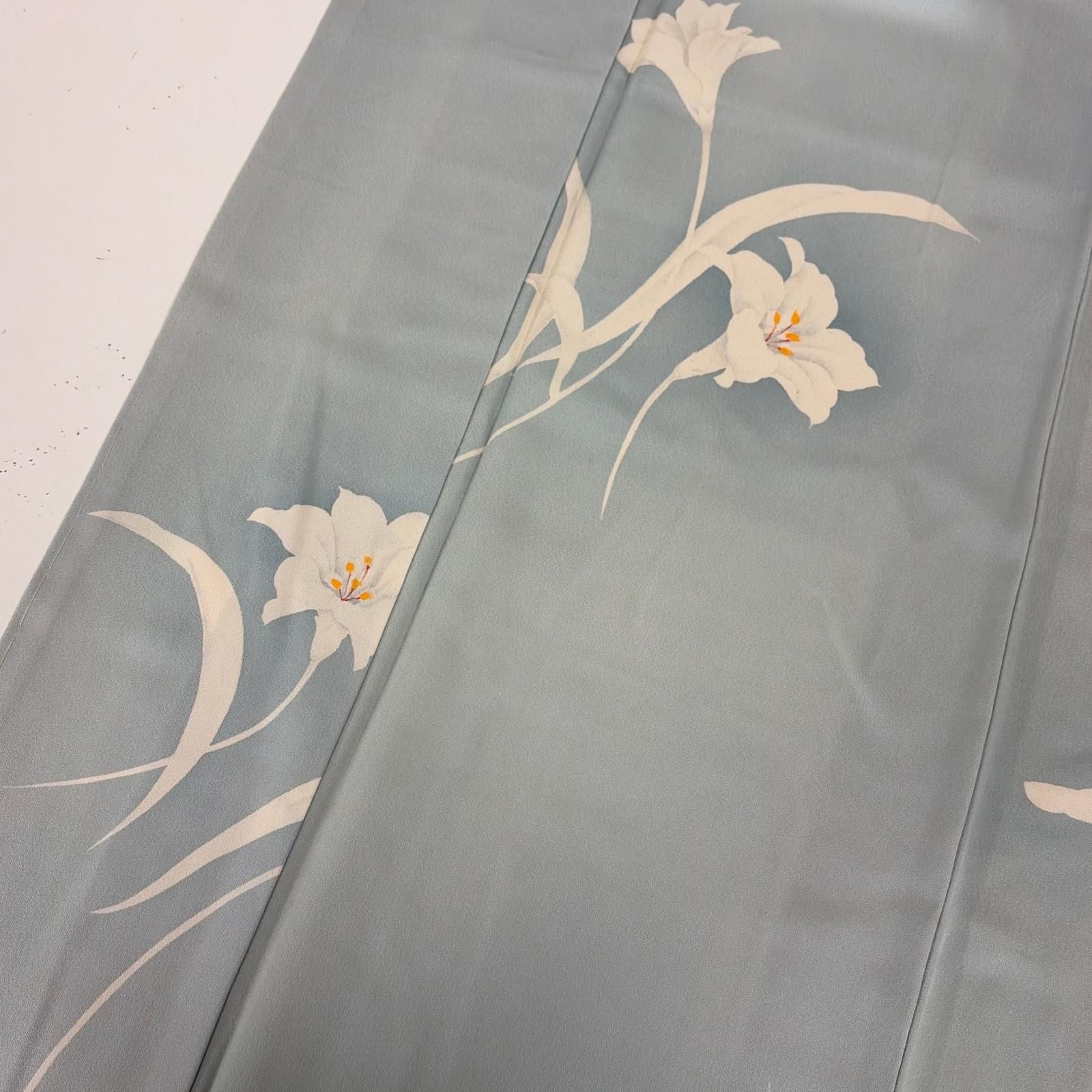 付下げ 裄66 上品な花柄の染め 紋無し 正絹 着物 MK-7052