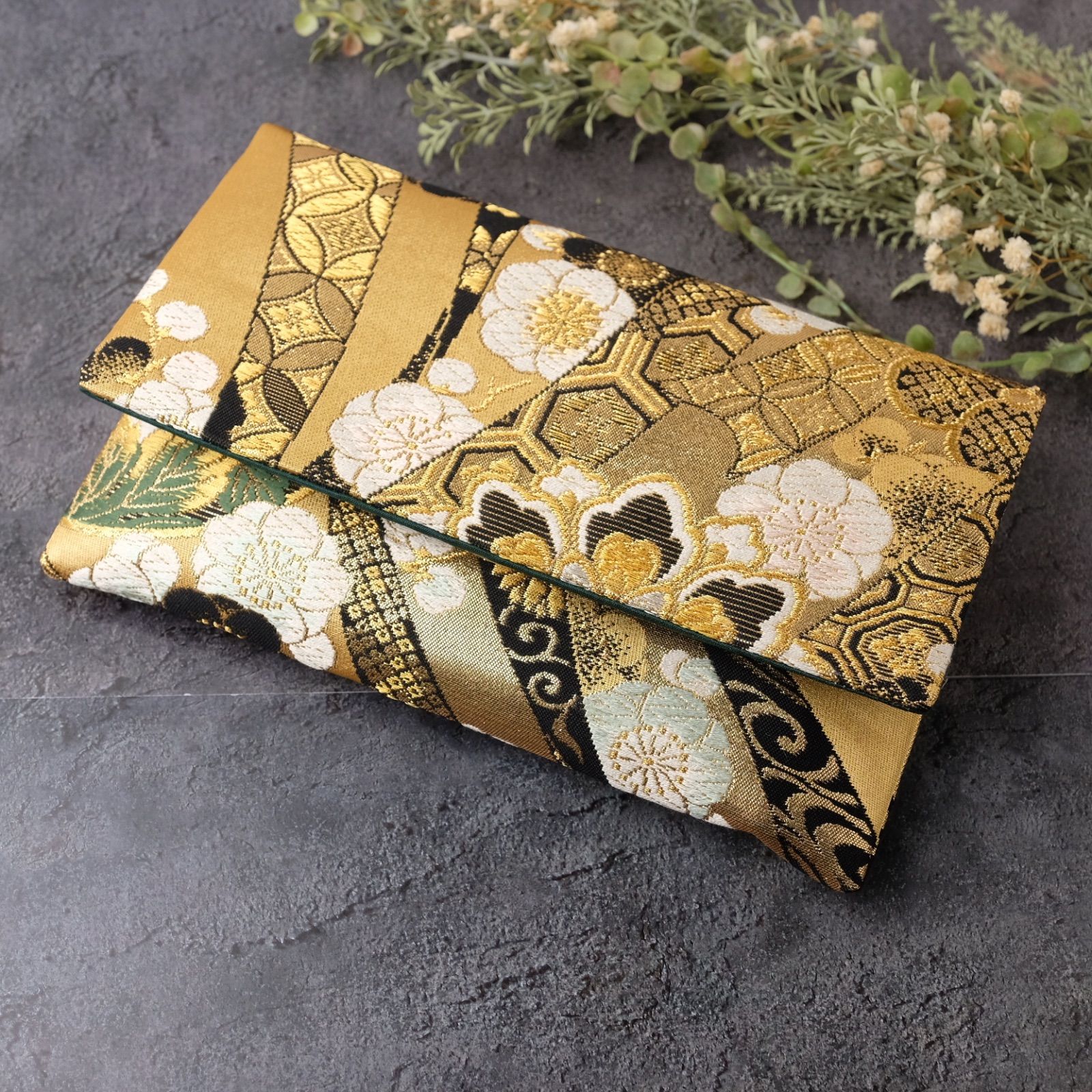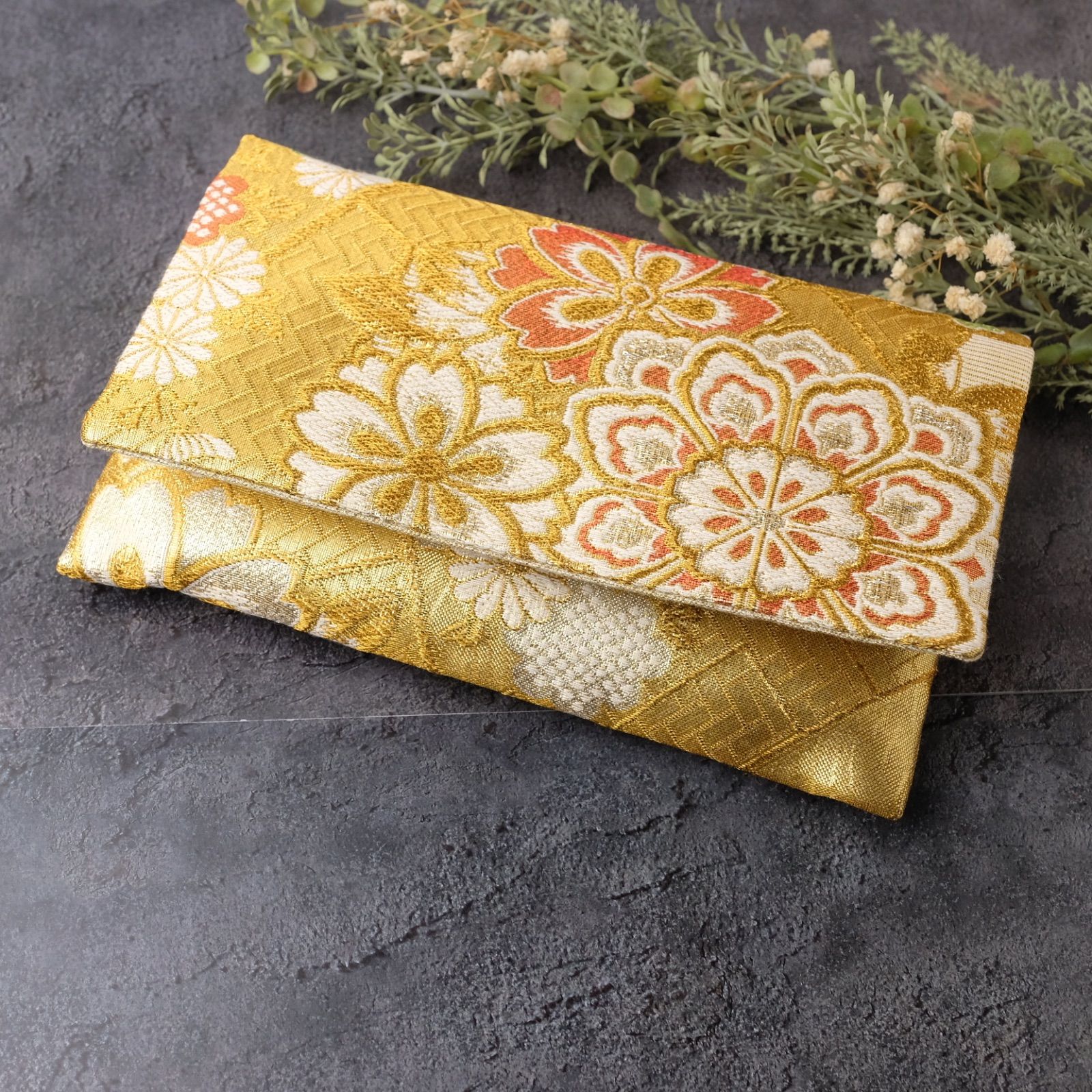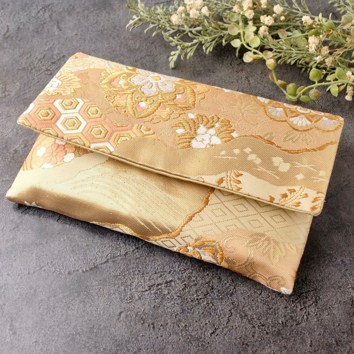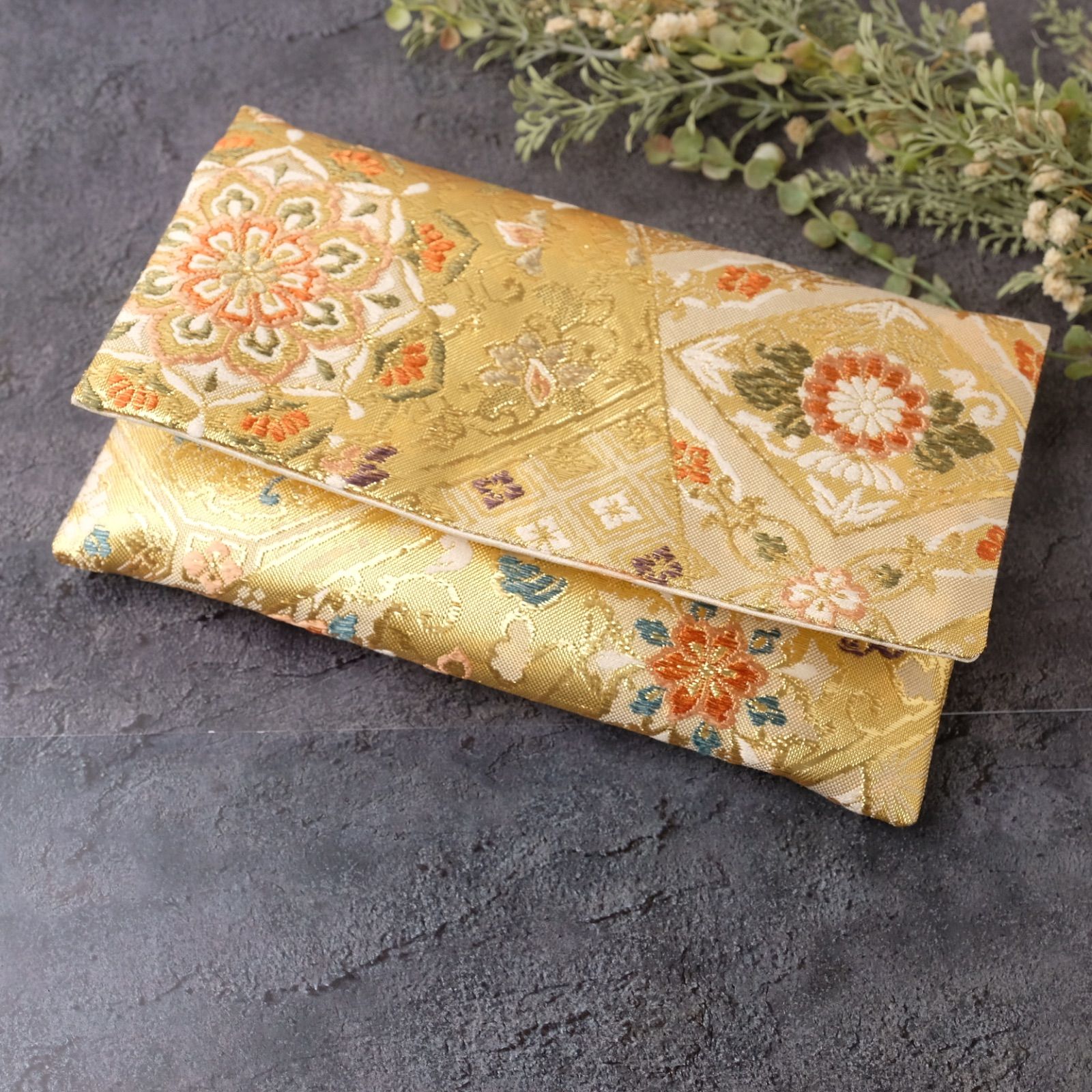 御朱印帳ケース 帯リメイク 袱紗タイプ 御朱印帳入れ 和柄 金 ゴールド 裂取華紋 一点物 G-25-165 ハンドメイド