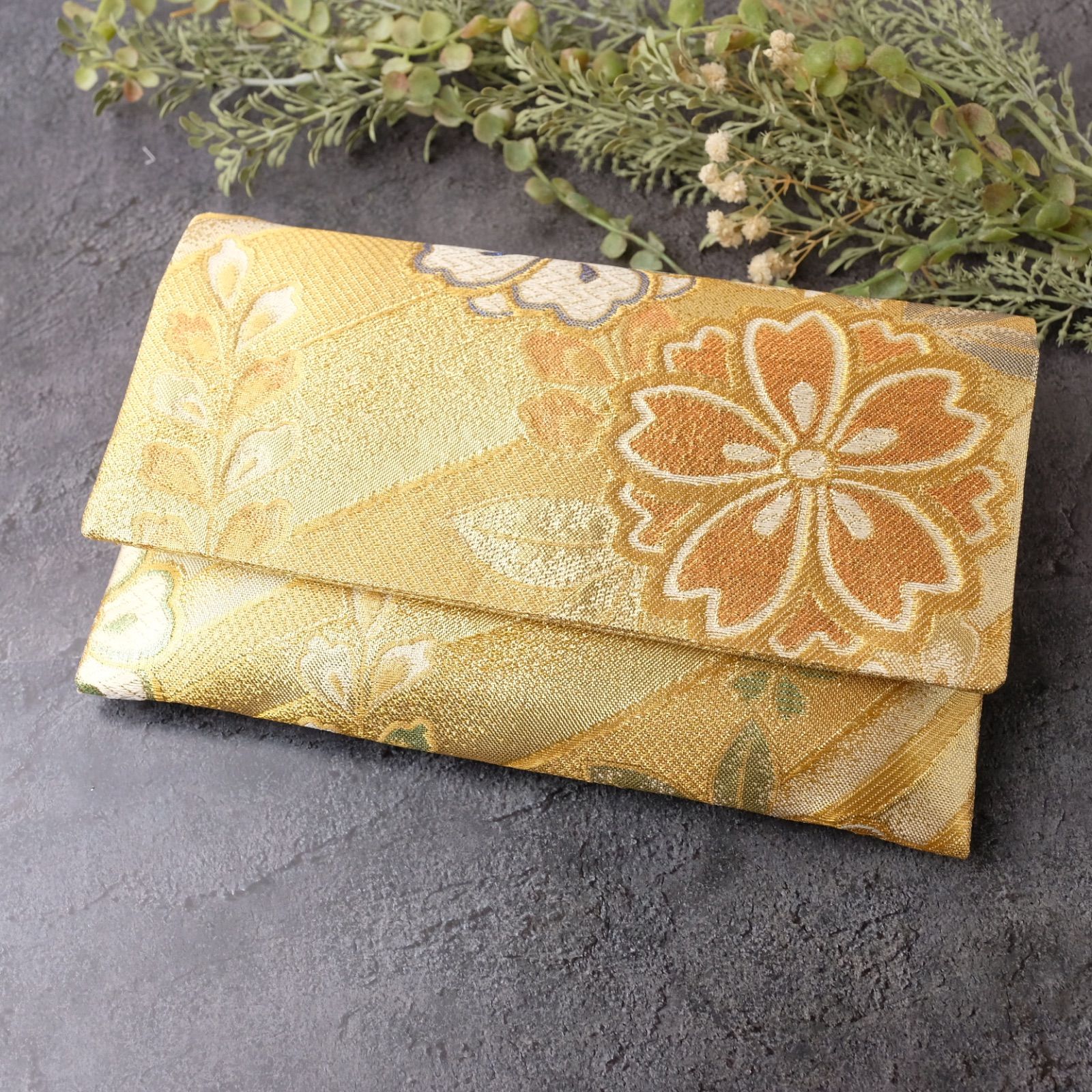 御朱印帳ケース 帯リメイク 袱紗タイプ 御朱印帳入れ 和柄 和風 金 桜 一点物 G-25-178 ハンドメイド