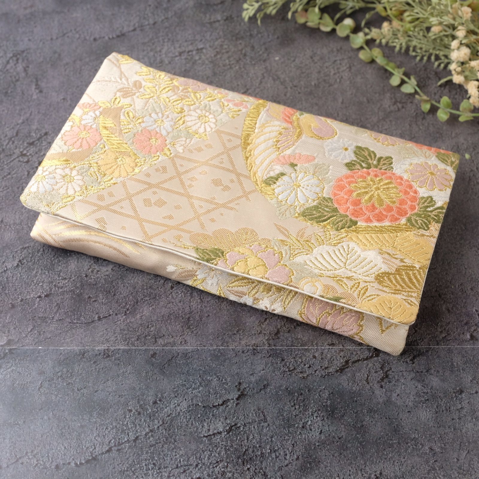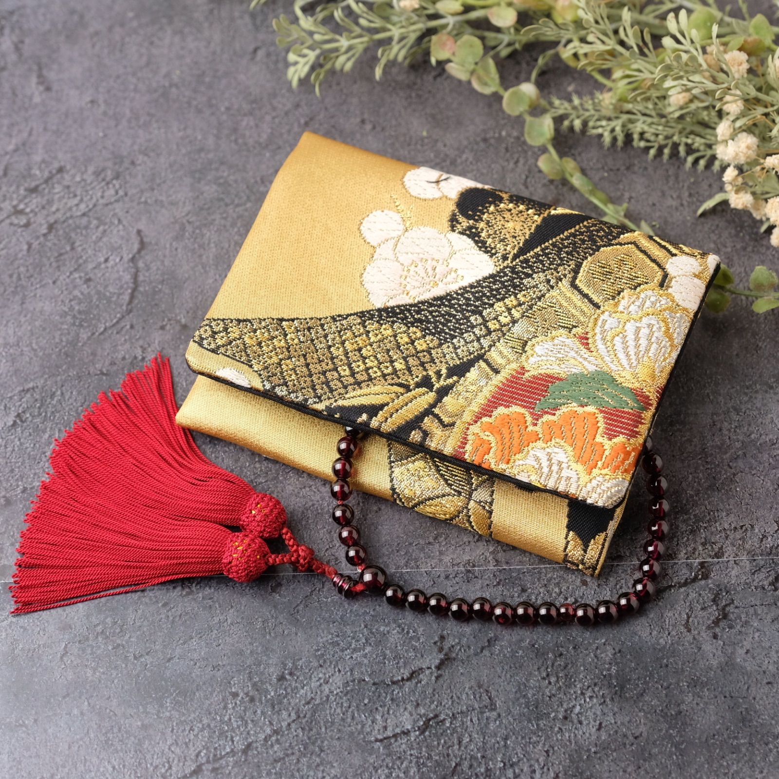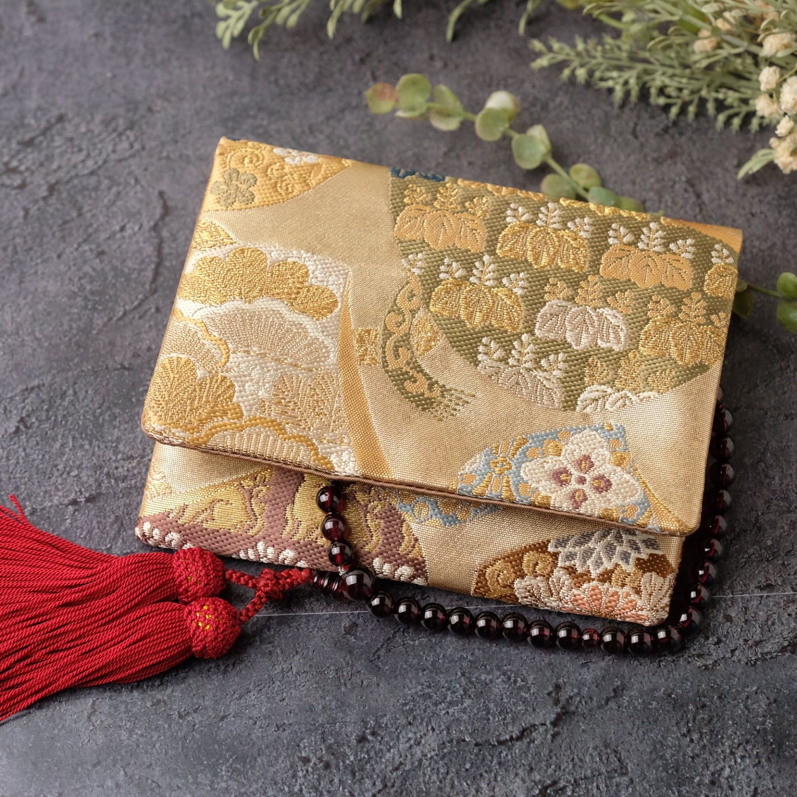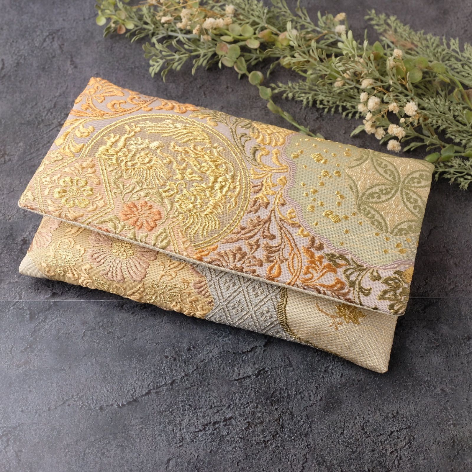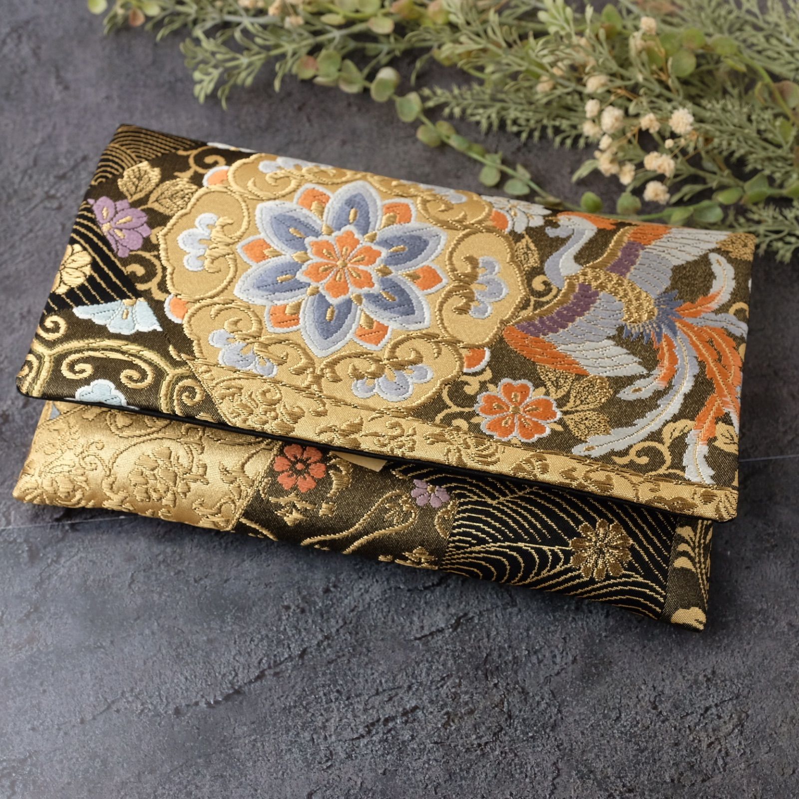 帯リメイク 数珠入れ 数珠ケース 念珠入れ 一点物 和柄 和風 金 草花 鳳凰 上品 フォーマル ハンドメイド J-15-117