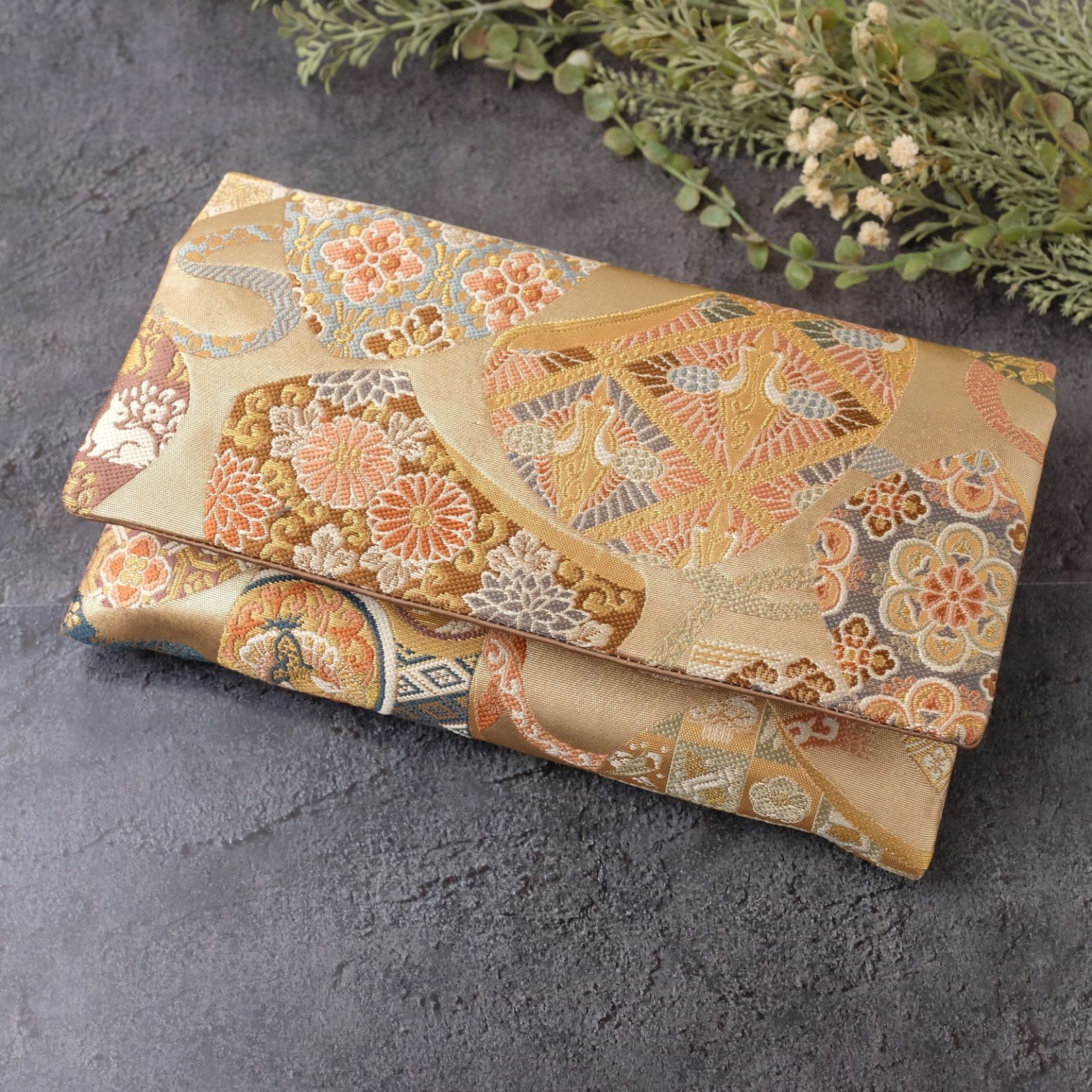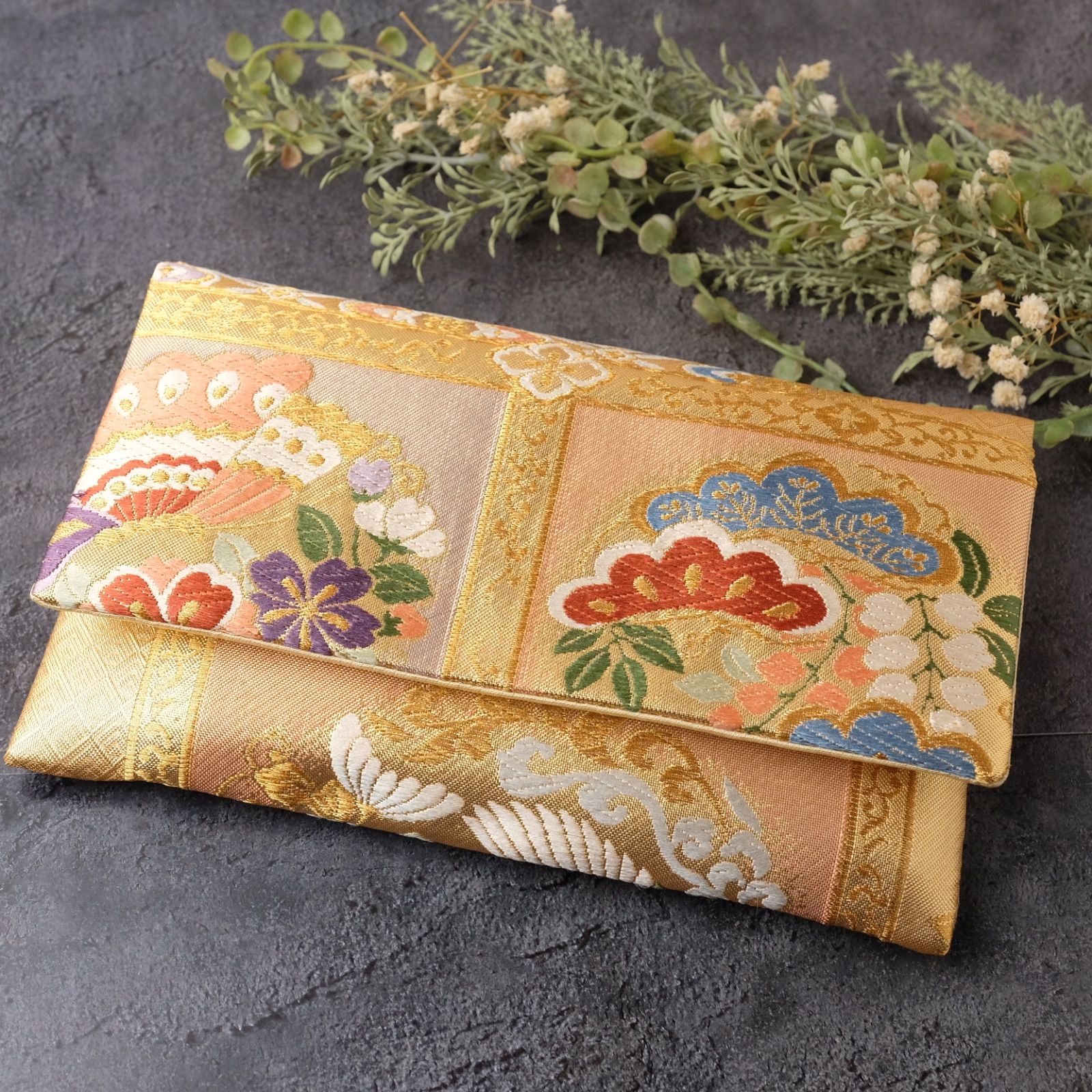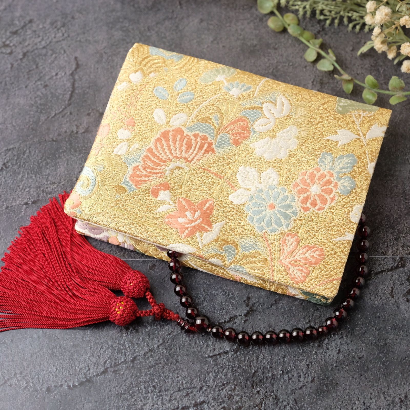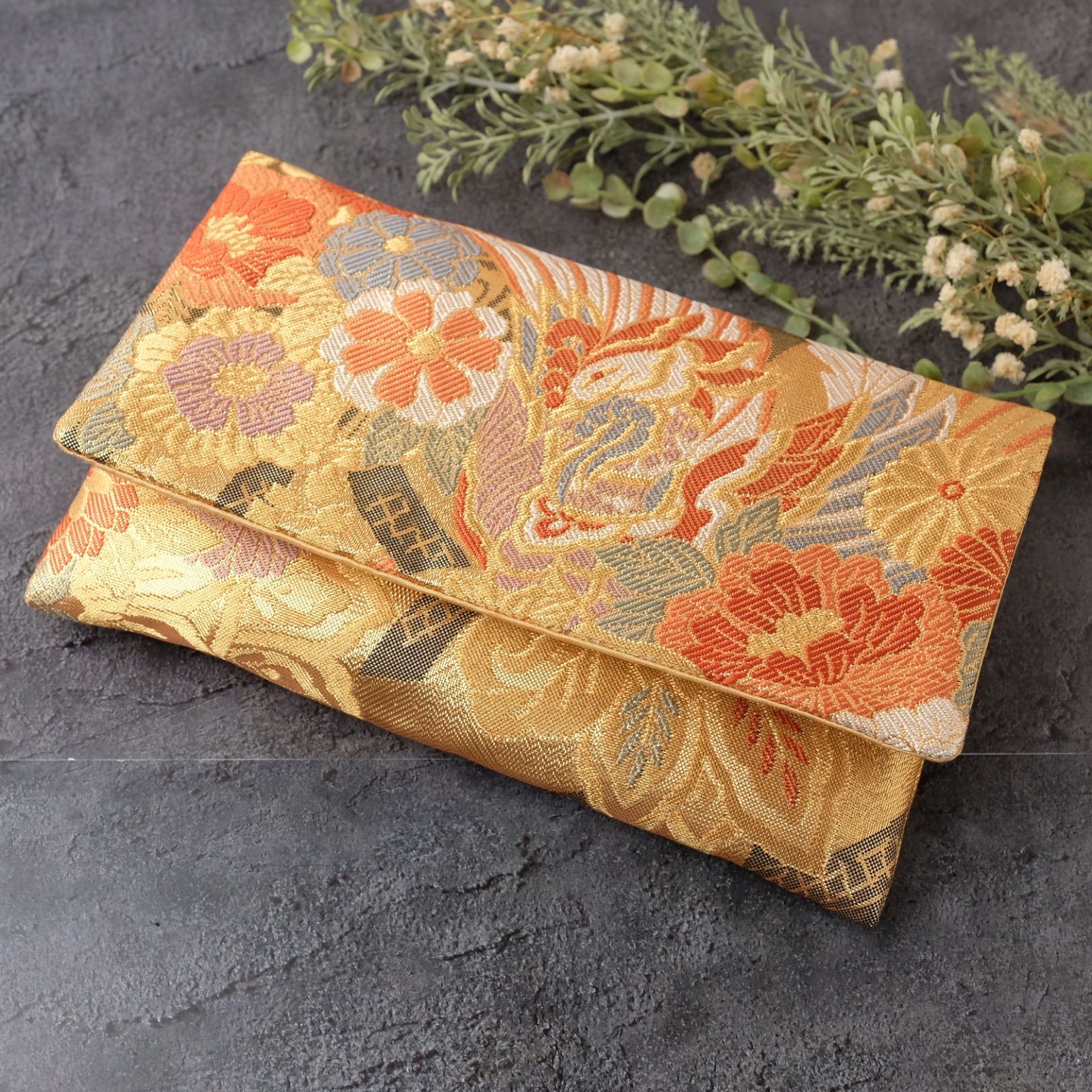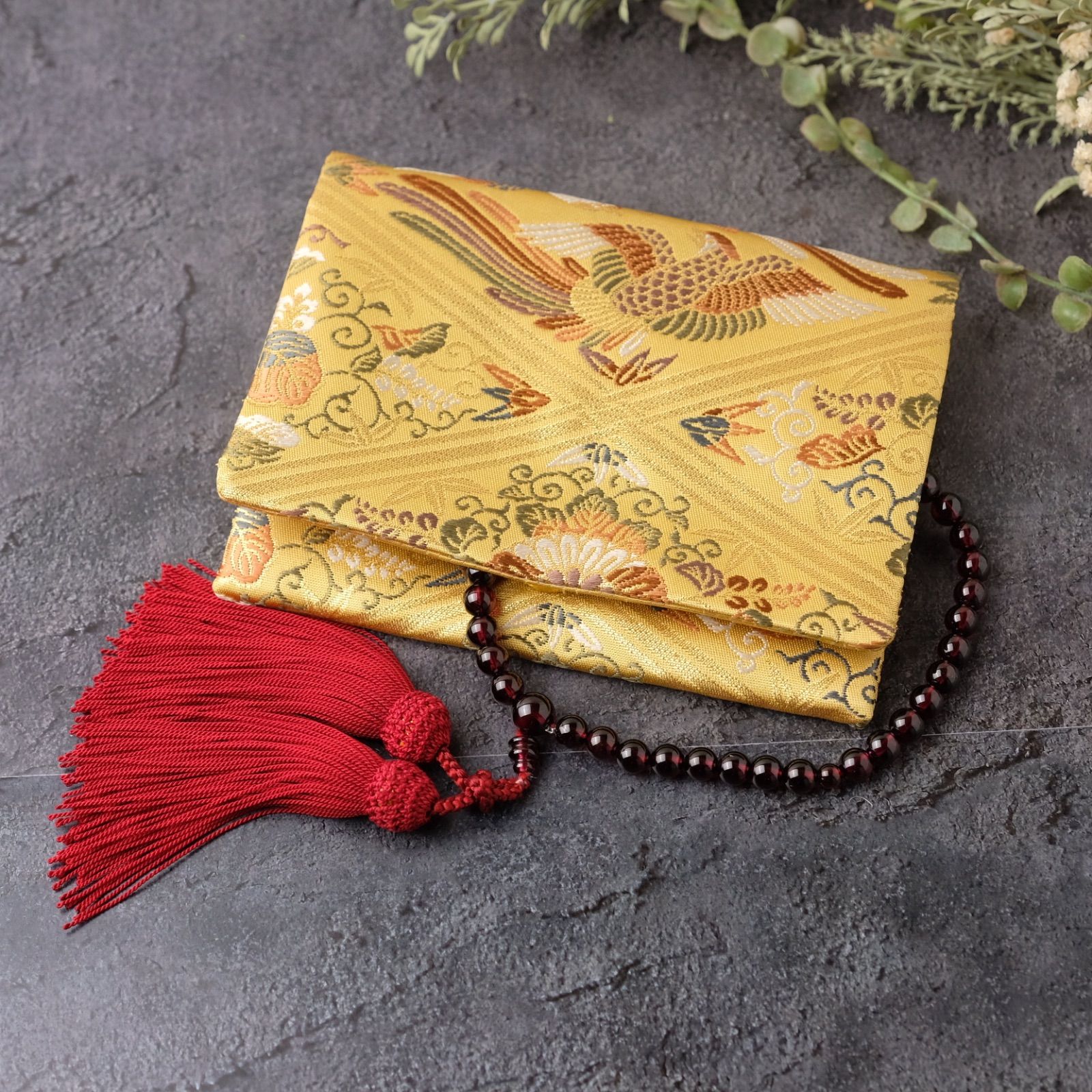 帯リメイク 数珠入れ 数珠ケース 念珠入れ 一点物 和柄 和風 金 草花 鳳凰 上品 フォーマル ハンドメイド J-15-117