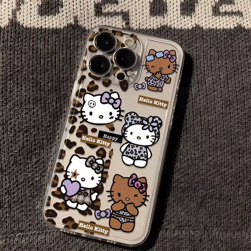 スマホケース キティーちゃん ヒョウ柄 透明 iPhone対応 アイフォンケース iPhone16/15/15pro/14/13/12/11 可愛いケース 海外限