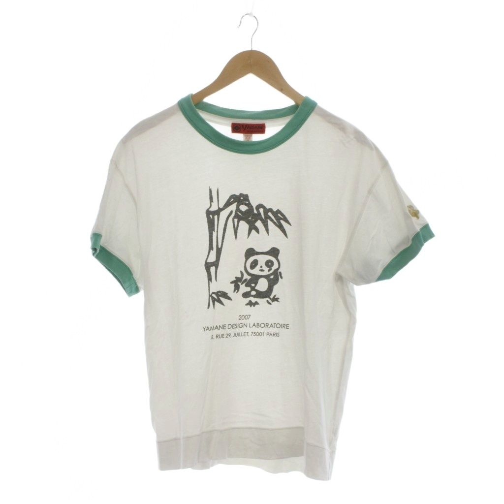 エヴィス EVISU Tシャツ 40 白 緑 半袖 プリント 配色パイピング パンダ /JP
