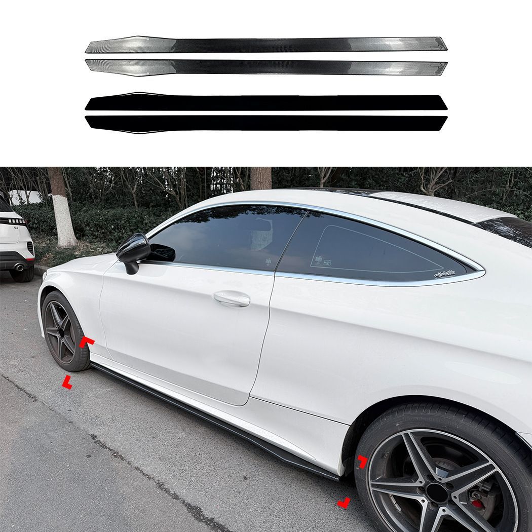 メルセデス・ベンツ Cクラス (Mercedes-Benz C-Class) W205 C205 AMG 2015-21 サイドスカート アンダースポイラー ABS製 ピアノブラック/カーボン柄 ドレスアップ ローダウン 空力改善 簡単装着 送料無料