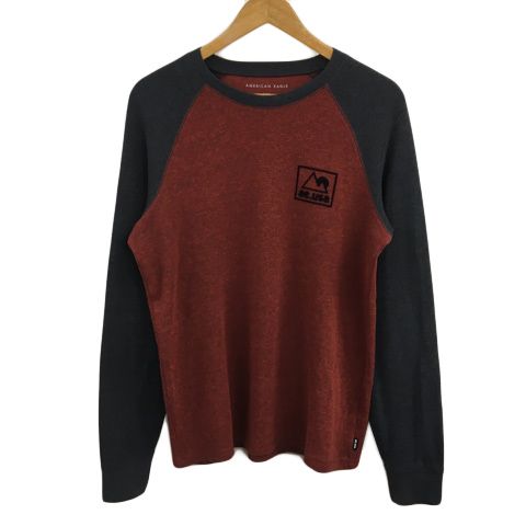 アメリカンイーグル AMERICAN EAGLE ニット セーター トレーナー ラウンドネック 切替 ロゴ 長袖 US M 赤 グレー レッド