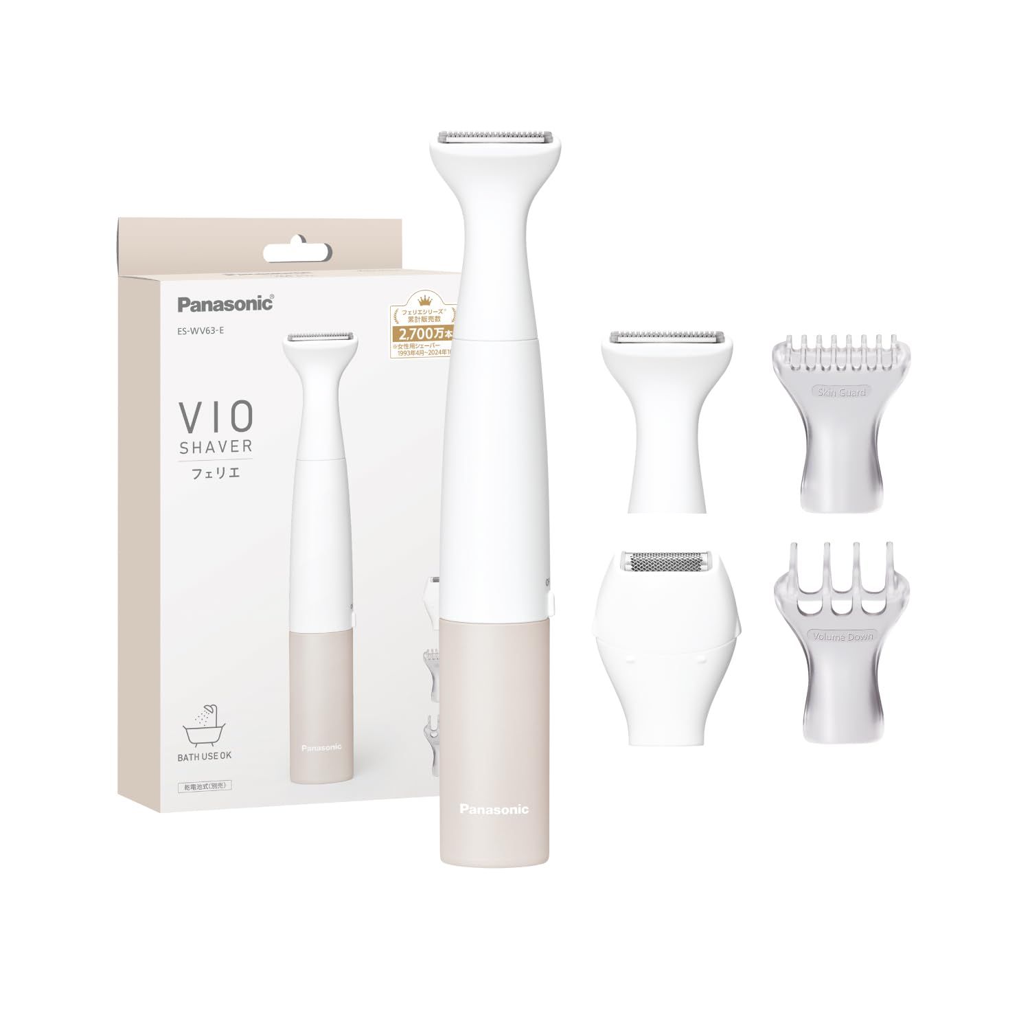 【新品】パナソニック VIOシェーバー フェリエ IPX7防水 ドライ剃り 除毛器 乾電池式 ベージュ調 ES-WV63-E【2025年発売】◆シナモロールステッカー付◆ dadda2db