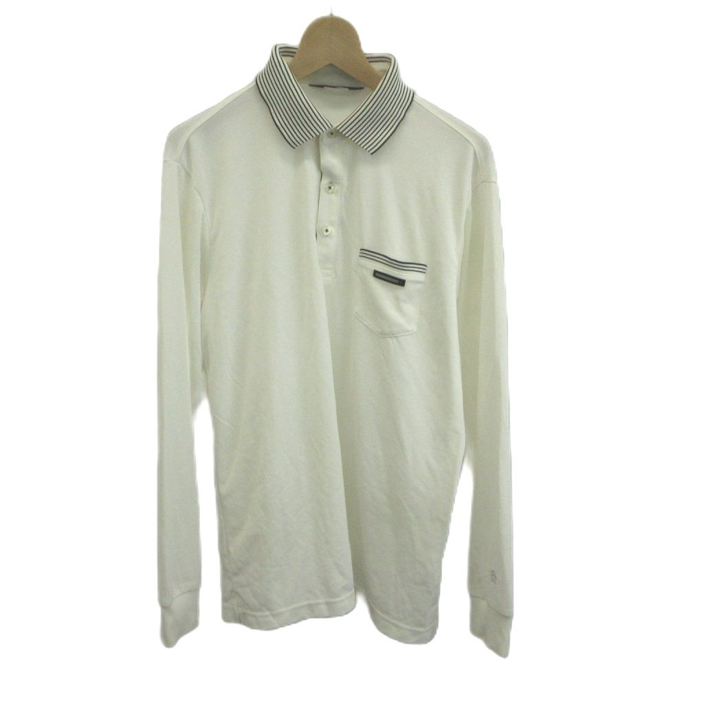 マンシングウェア MUNSINGWEAR ポロシャツ LL ホワイト 長袖 ボーダー柄 胸ポケット /RY ■GY49