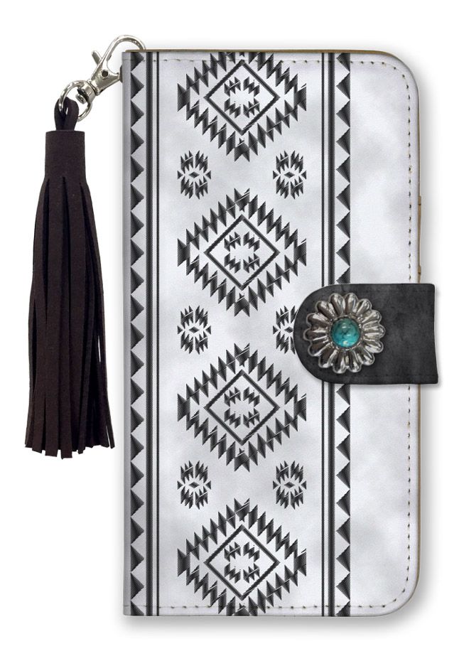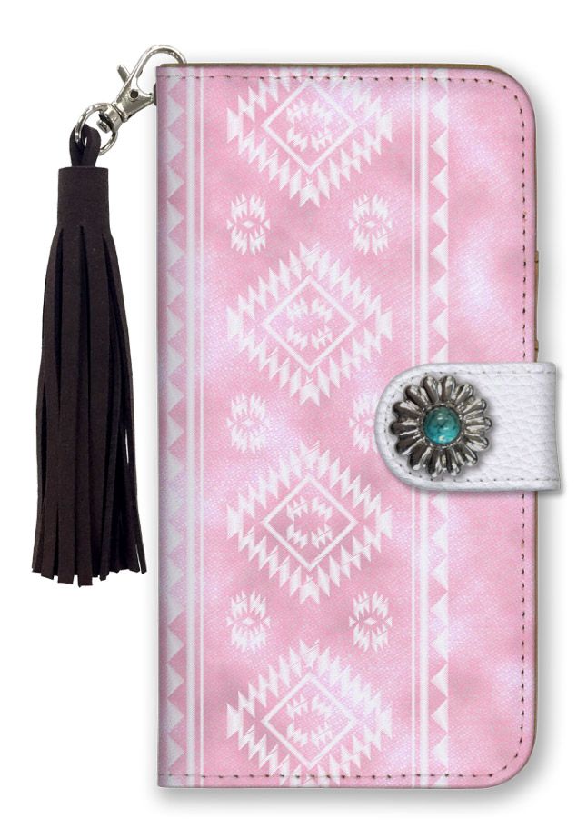 nubia S2 5G A504ZT ケース 手帳型 ヌビア S2 スマホケース 携帯ケース フリンジ ストラップ付 チャーム コンチョ ネイティブ オルテガ柄 刺繍 カラー06