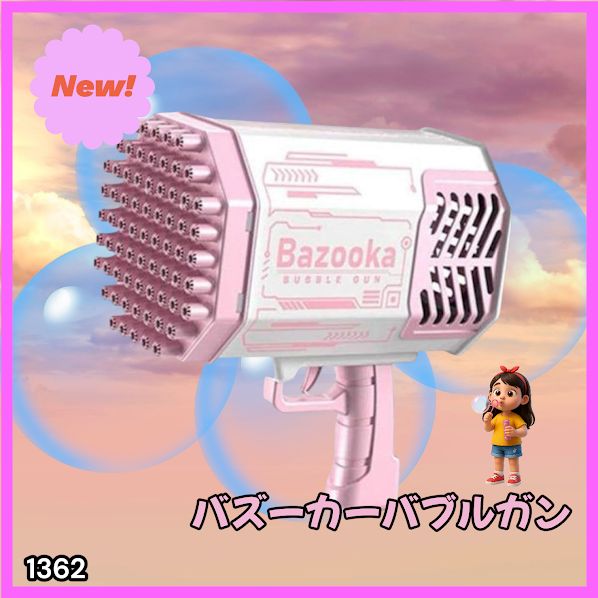 #1362 シャボン玉 電動 バブルガン ピンク おもちゃ バズーカー バブルマシン バブルシャワー 連続噴射 LEDライト ※北海道、沖縄本島、沖縄の離島、その他離島へは別途配送料有り