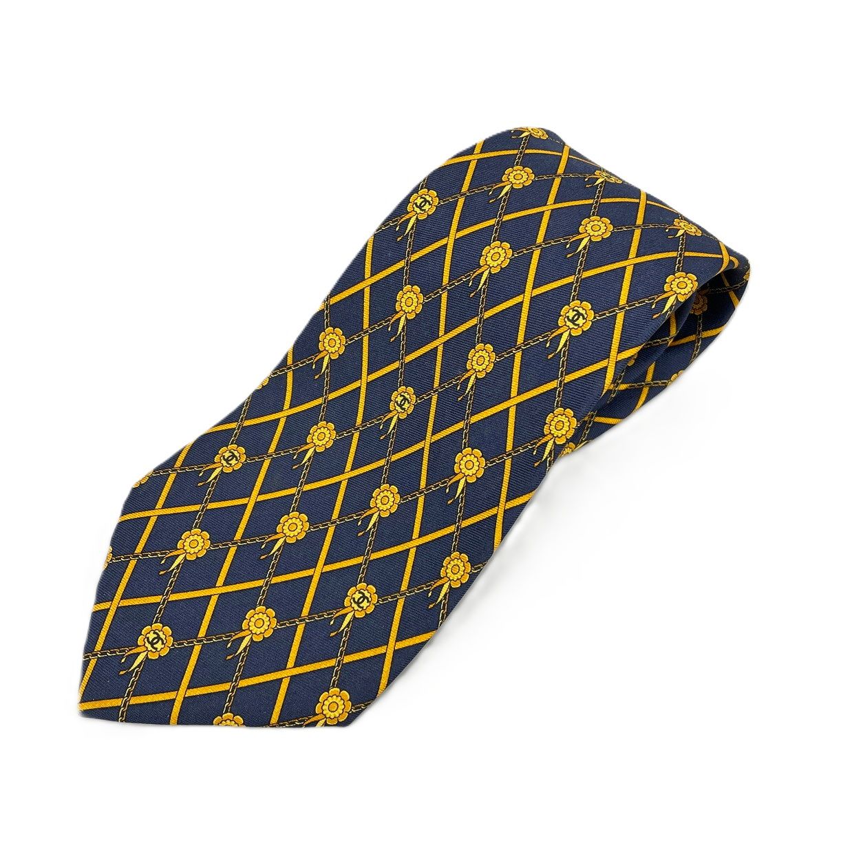シャネル CHANEL ネクタイ シルク100% ネイビー 総柄