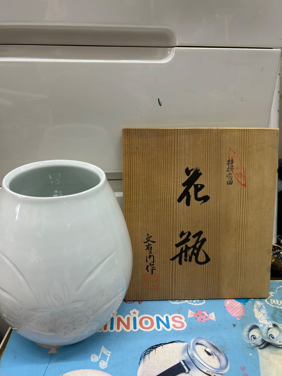 特選 有田焼 白磁 花瓶 文右ェ文作