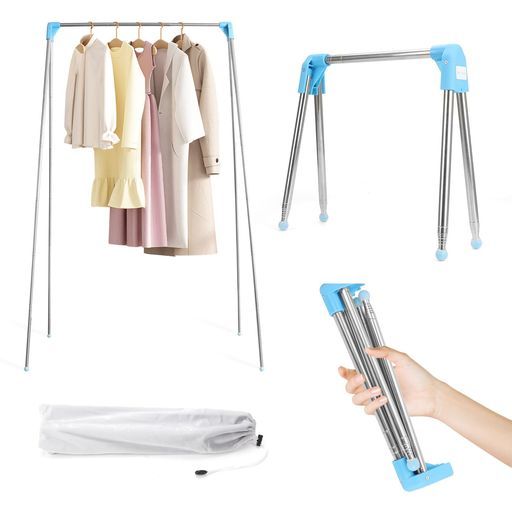 室内物干し物干しスタンド折りたたみコンパクト洗濯物干しスタンドステンレス製【組み立て不要】コンパクト屋外対応ベランダ室内用洗濯ハンガーワンタッチ収納伸縮タイプものほしざ…