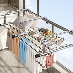 【プロ仕様の頑丈ステンレス】「サビに強い高品質ステンレス鋼材」を使用。雨や湿気の多いベランダや浴室でも錆発生ゼロ。収納すると小さくなるが、展開すれば大容量になります。高さは最大135cmまで、長さは32cmから73cmまで自由に調整できますので、都合より利用できます。