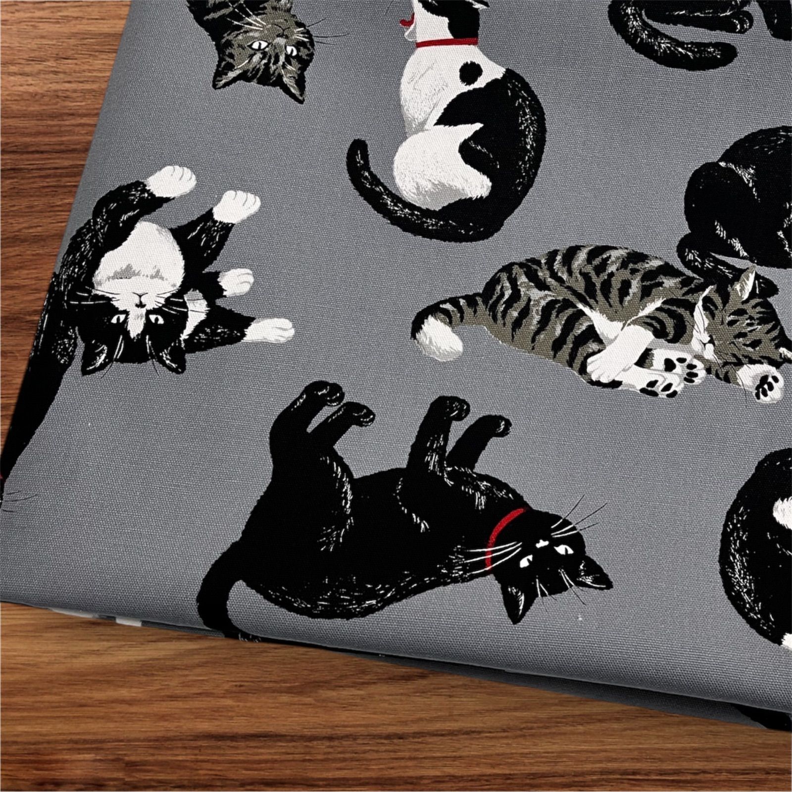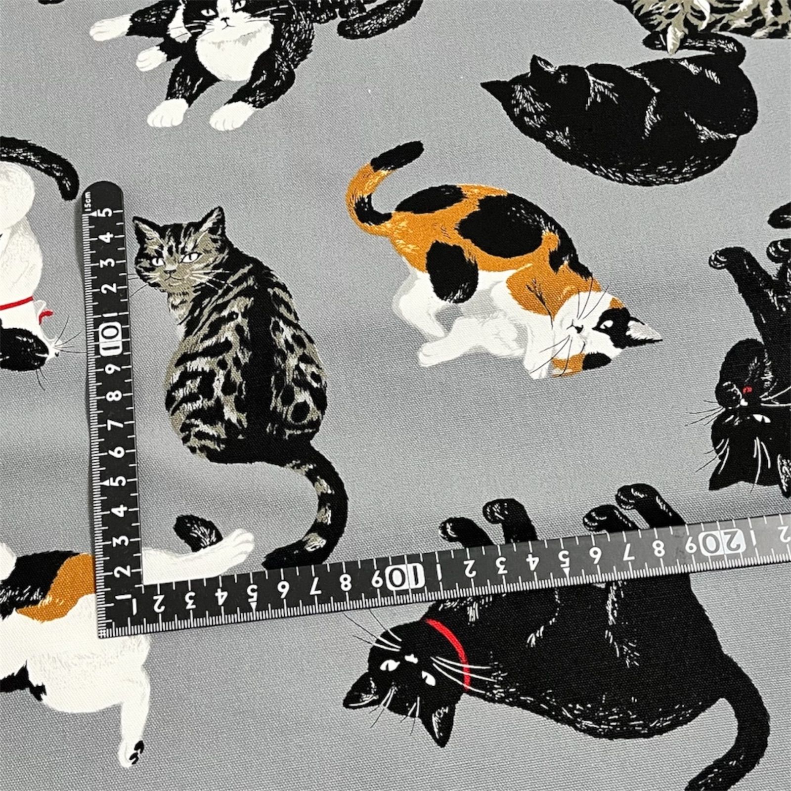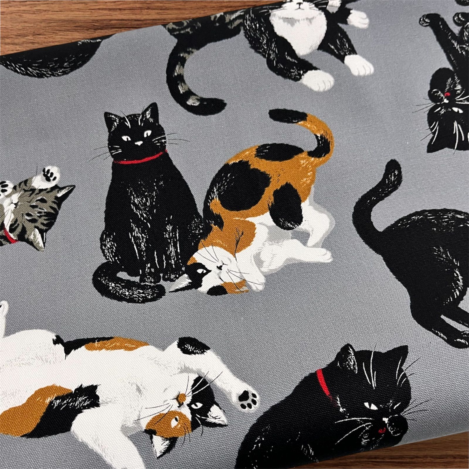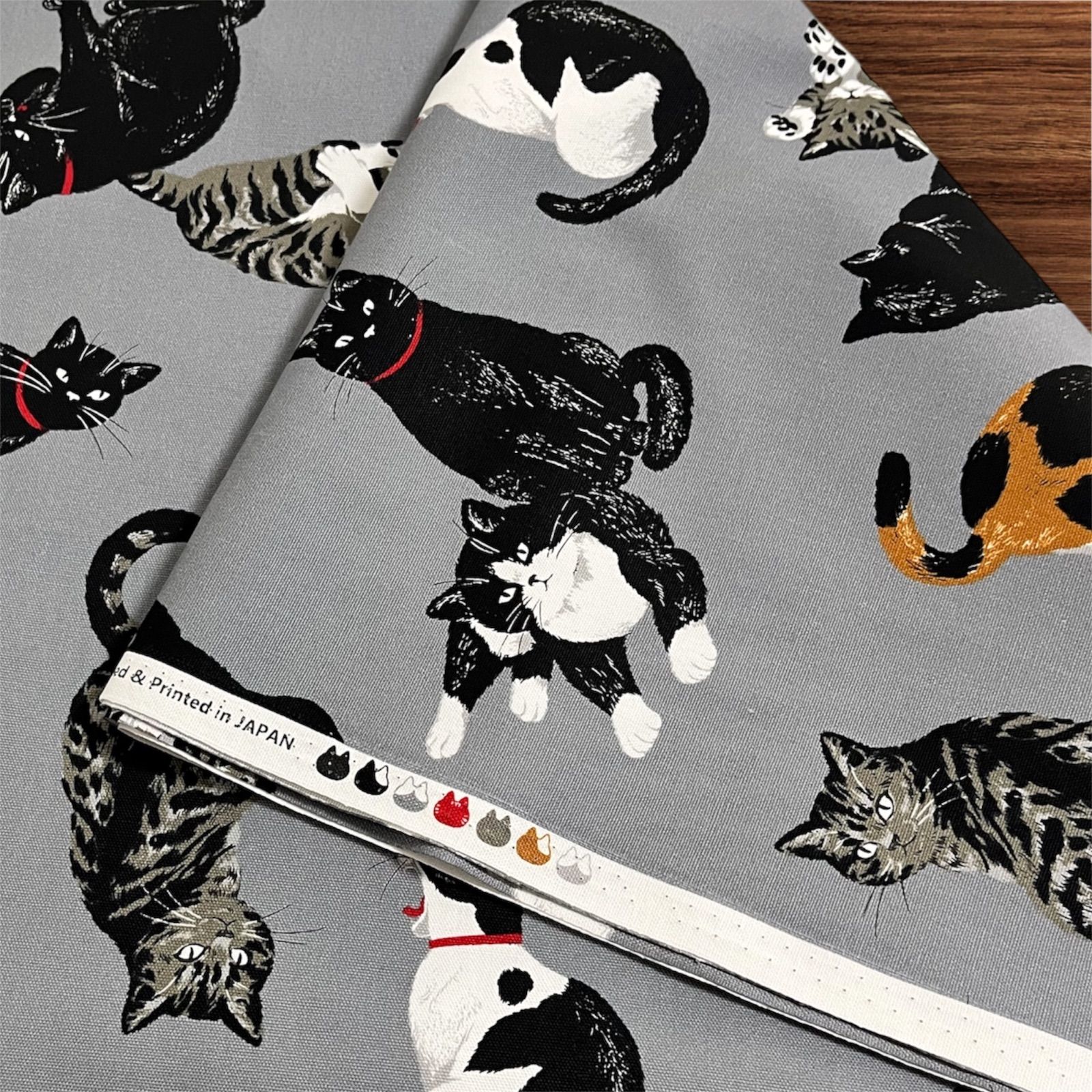 オックス 生地 のんびり 猫柄 50cmコスモ グレー 三毛猫 サバ猫 黒猫