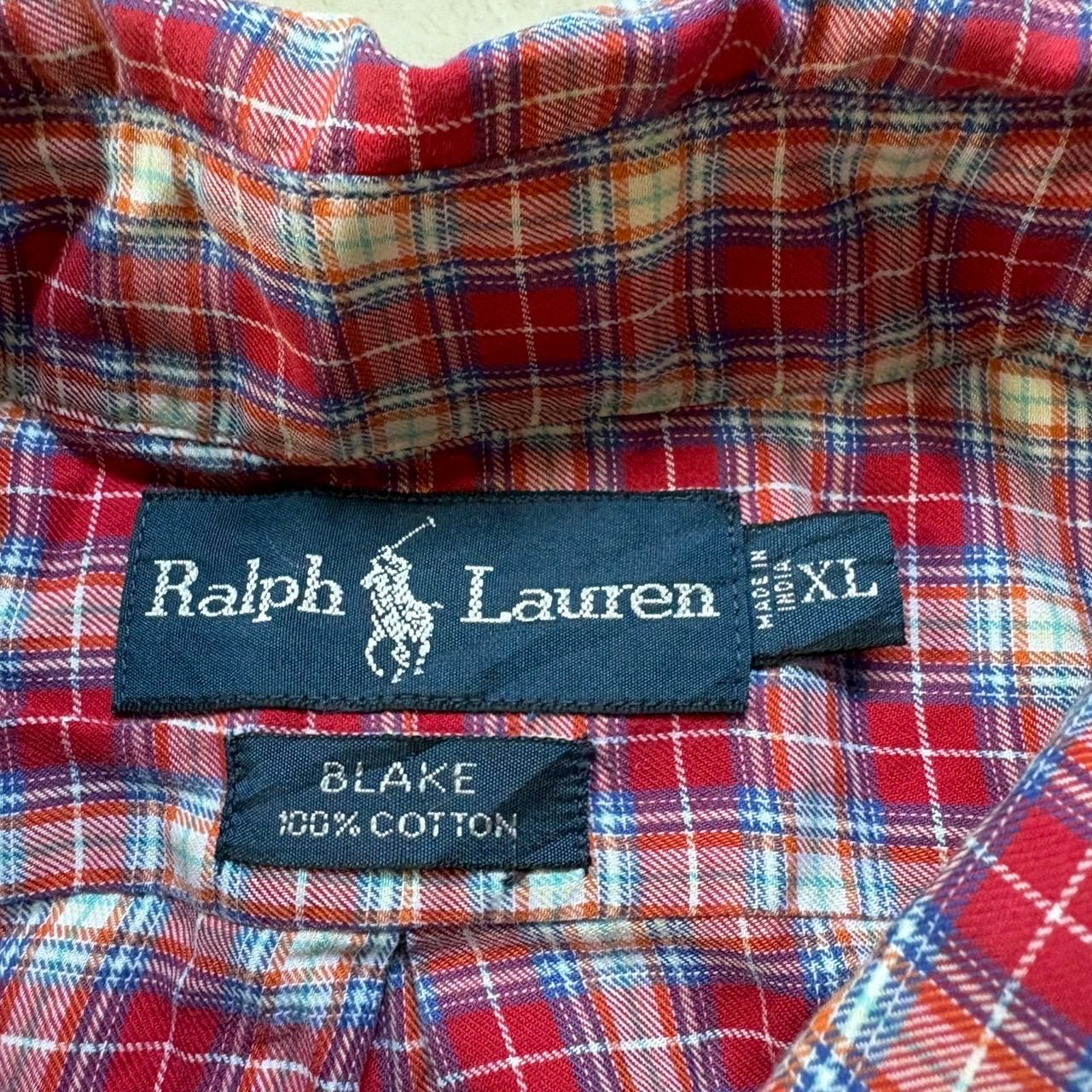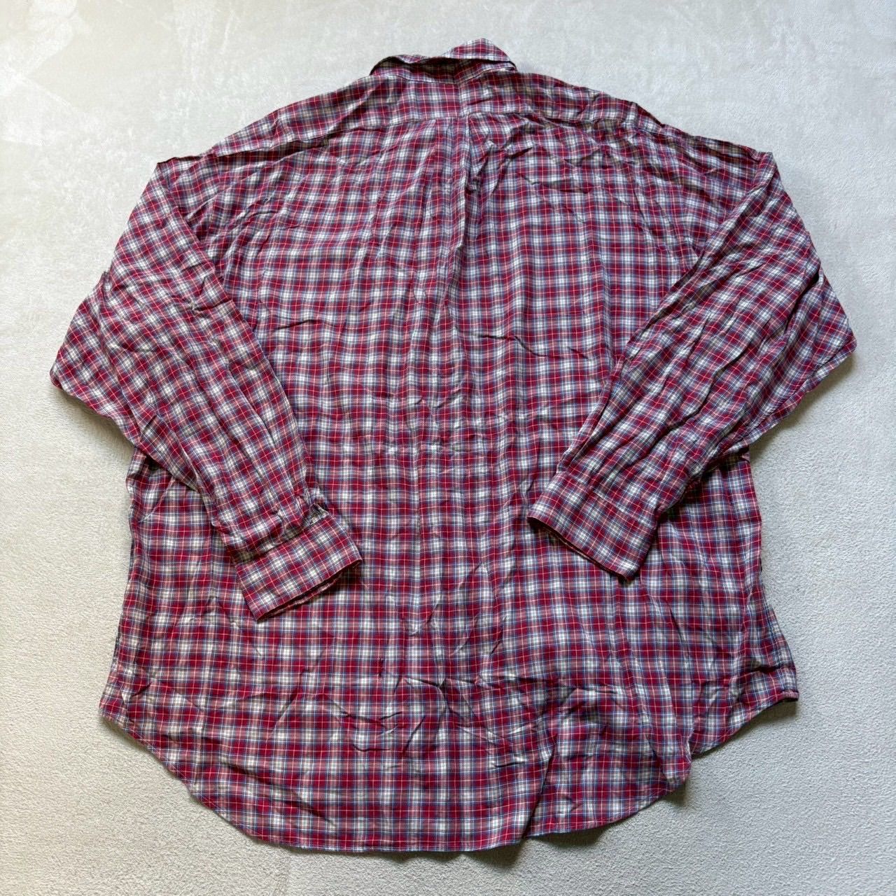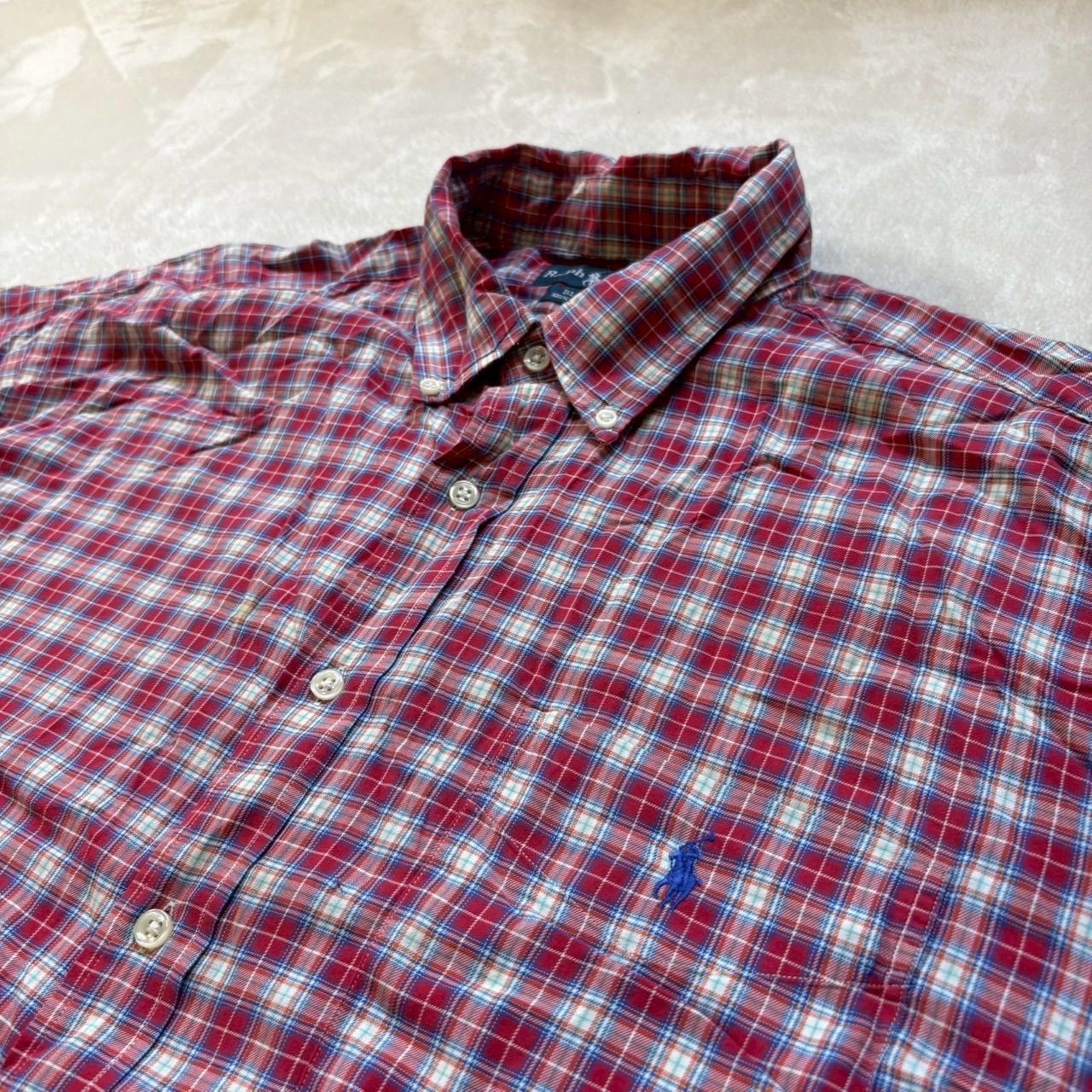 【訳あり激安】Ralph Lauren (ラルフローレン) 長袖ボタンシャツ ネルシャツ チェック 刺繍ロゴ ポニー ワンポイント インド製 コットン100% 90s ヴィンテージ 大きいサイズ メンズ XLサイズ LLサイズ