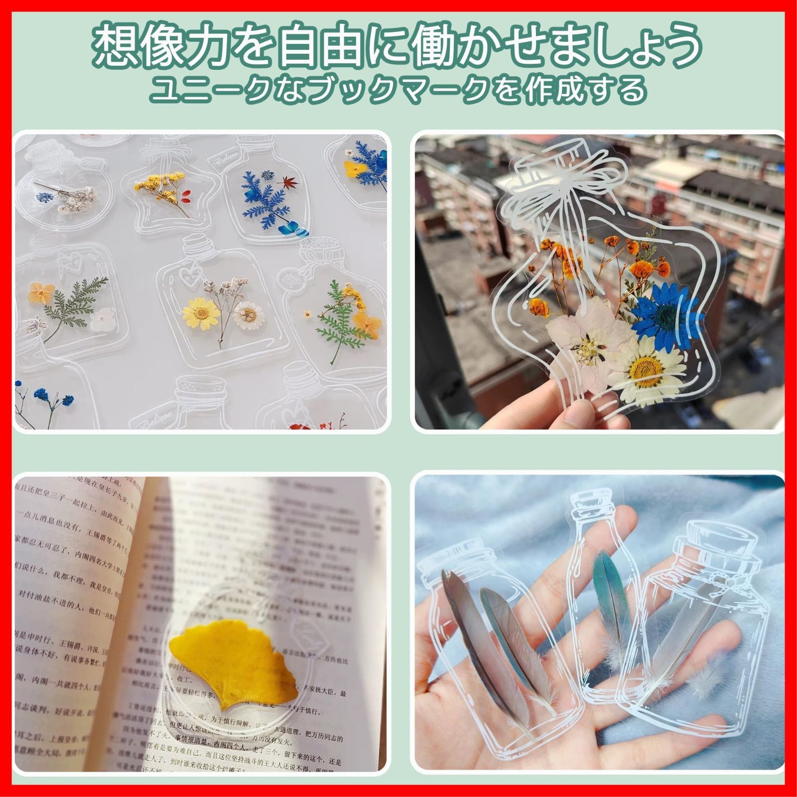 【贈り物に最適】植物のしおりは自然な香りがあり、すべての読者、女性、男性、そして若者に最適なプレゼントです。DIY押し花しおりは、誕生日、卒業シーズン、バレンタインデーなどのプレゼントにすることができます。あなたはそれをあなたの家族、友人、パートナー、クラスメート、子供、友人にプレゼントすることができます。透明押し花しおりは、さまざまな場面で使用することができ、学生、教師、作家、アーティストなど、さまざまな人々に適しています。DIY押し花しおりの楽しさを思う存分楽しんでください!