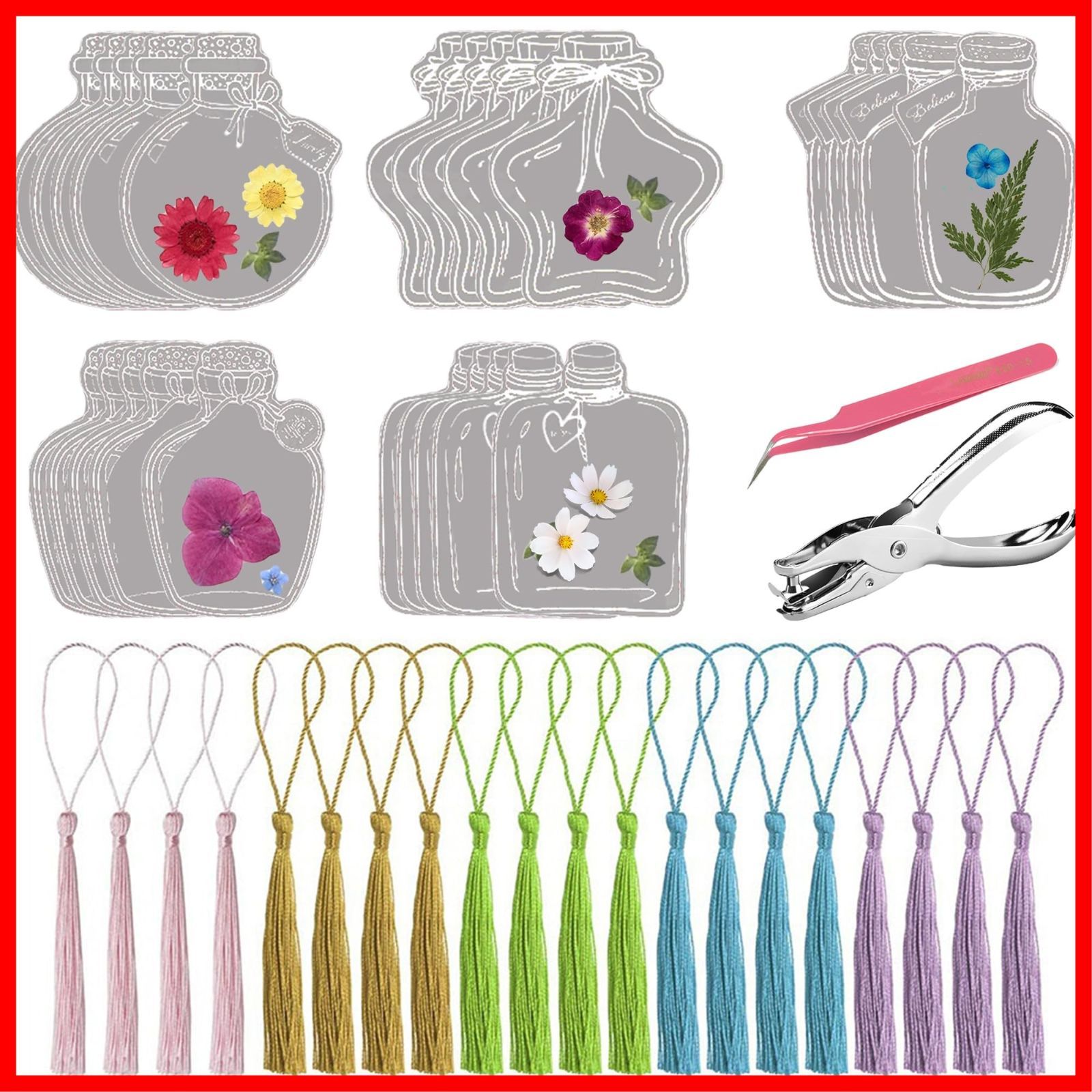 文房具読む ホームスクール用品 子供用 大人用 幼稚園 タッセル*20 手作り DIY 読書用レゼント用 手帳用 しおり しおり 穴あけパンチ しおり 植物標本 ボトル 可愛い 可愛い 透明ブックマーク おしゃれ ピンセット 押し花キット 押し花 ドライフラワ