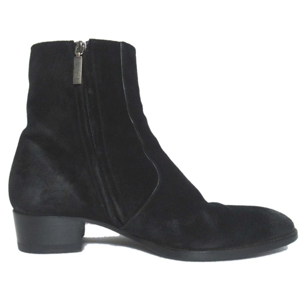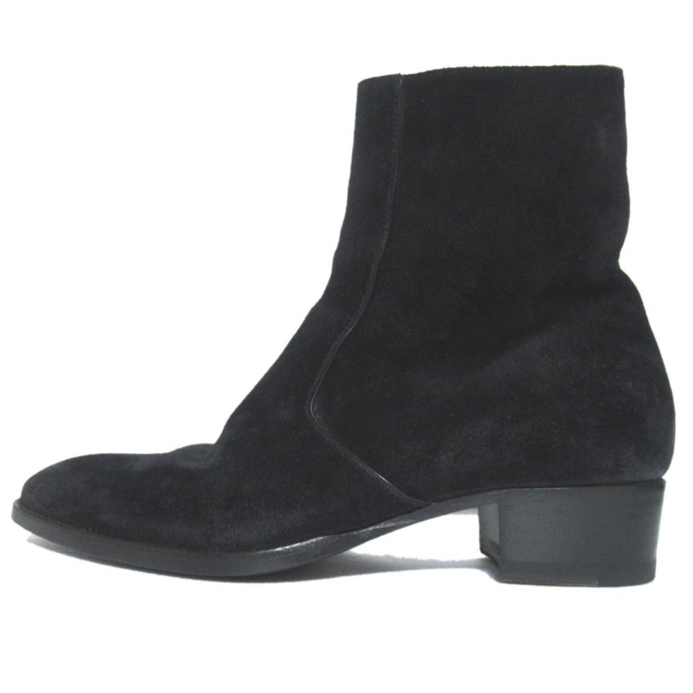 美品 SAINT LAURENT PARIS サンローランパリ スエード ジップワイアットブーツ ショートブーツ サイズ39.5 24.5cm相当 ブラック メンズ 古着 中古 USED