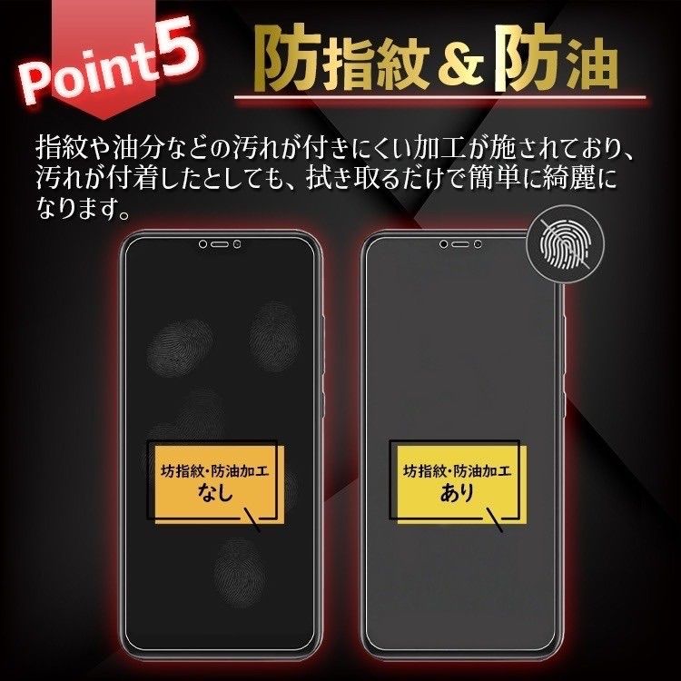 ・指紋防止コーティング付きで、指紋がついた場合でも軽く拭くだけで簡単に除去できます。