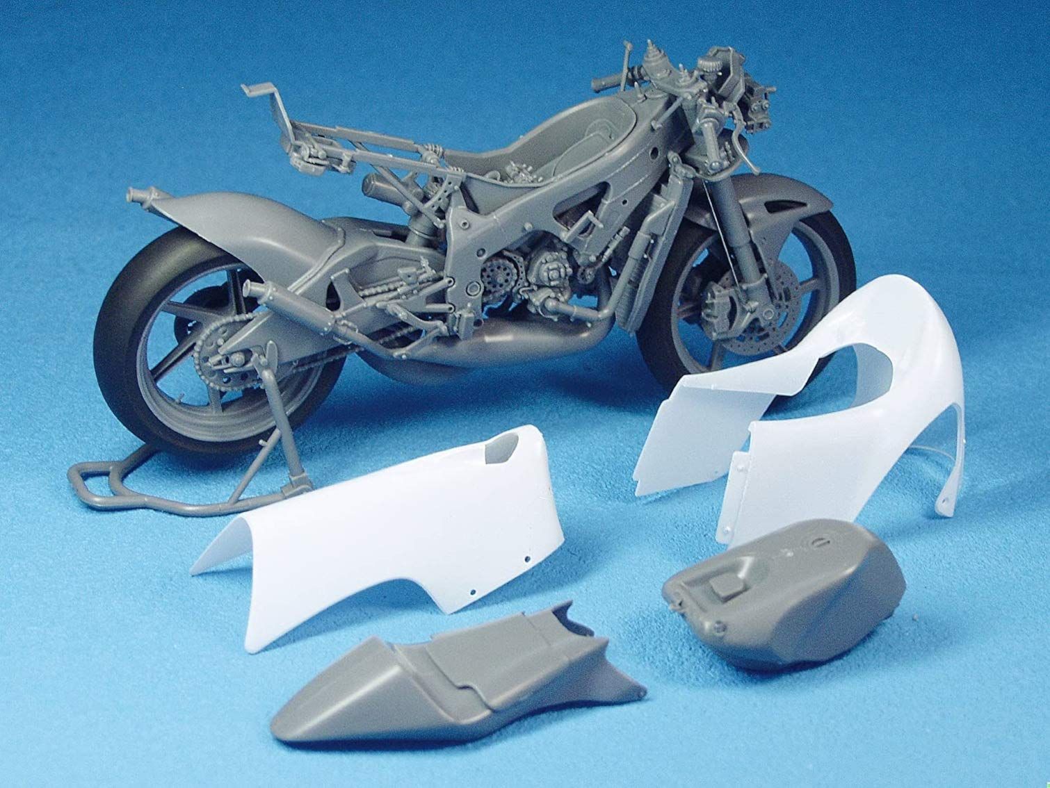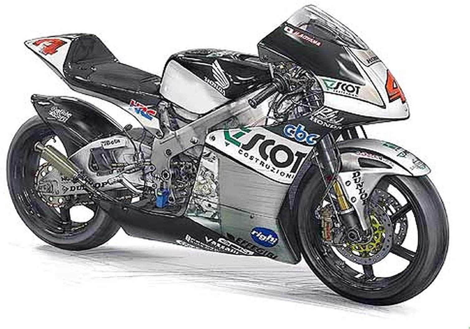 2009年で終止符を打った世界グランプリ250CCクラスより、2009世界チャンピオンとなって歴史にその名を刻んだ、日本人ライダー「青山博一選手」のホンダRS250RWを完全新金型でキット化!実車取材に基づき、そのフォルムを正確に再現。カウリングを外した状態も楽しめる仕様となります。組み立ての一部には金属ビスを使用し、強度と組み立て易さを確保。ただし、ビスの頭は完成後には見えなくなる設計となっており、スケール感を損なわない仕上がりとなります。リアサスペンション用の金属製のスプリングや、ストロークセンサー用金属シャフト、ブレーキチューブ他用のチューブが付属。タイヤはゴム素材を使用。発色が良く色透けの少ないカルトグラフ製デカールをセットします。