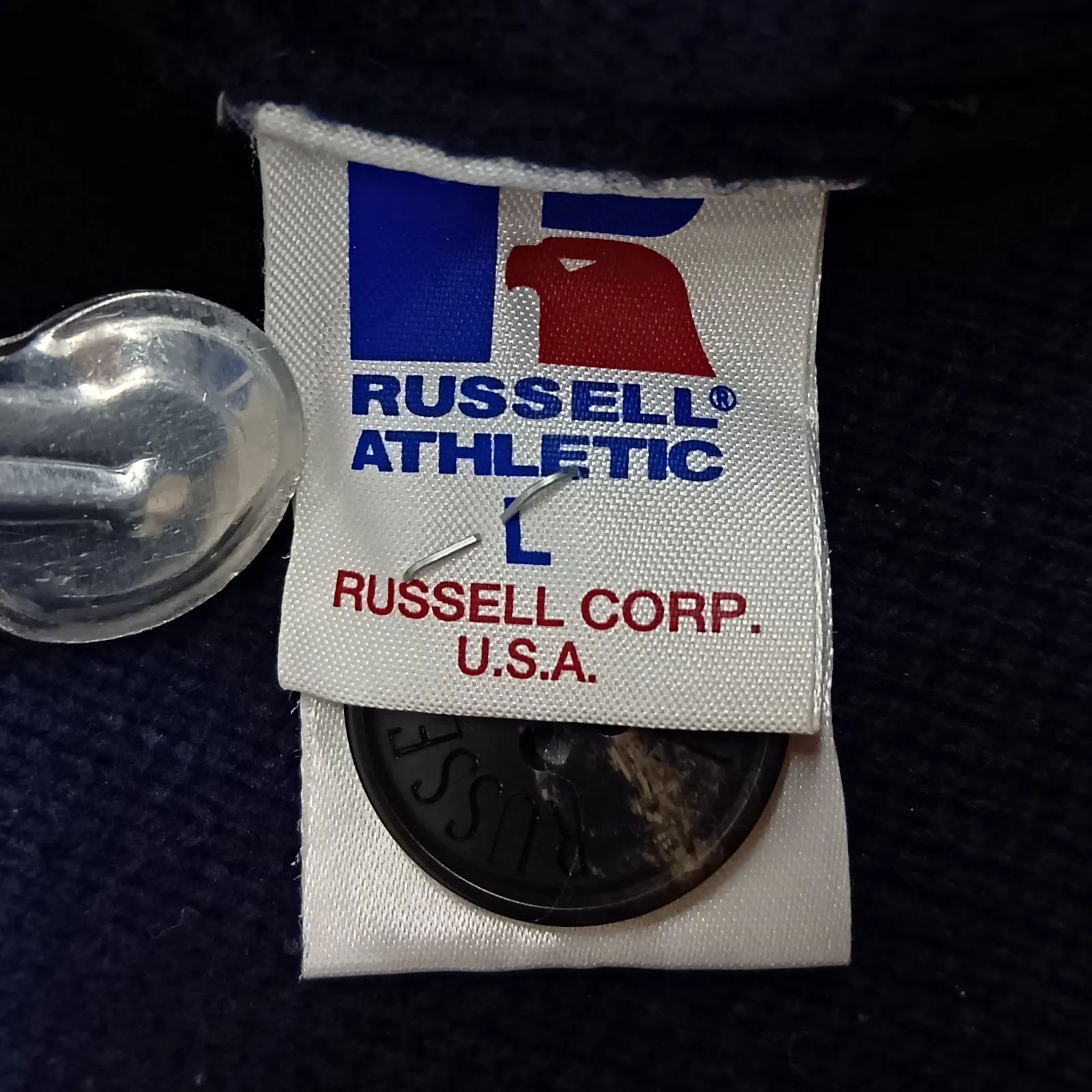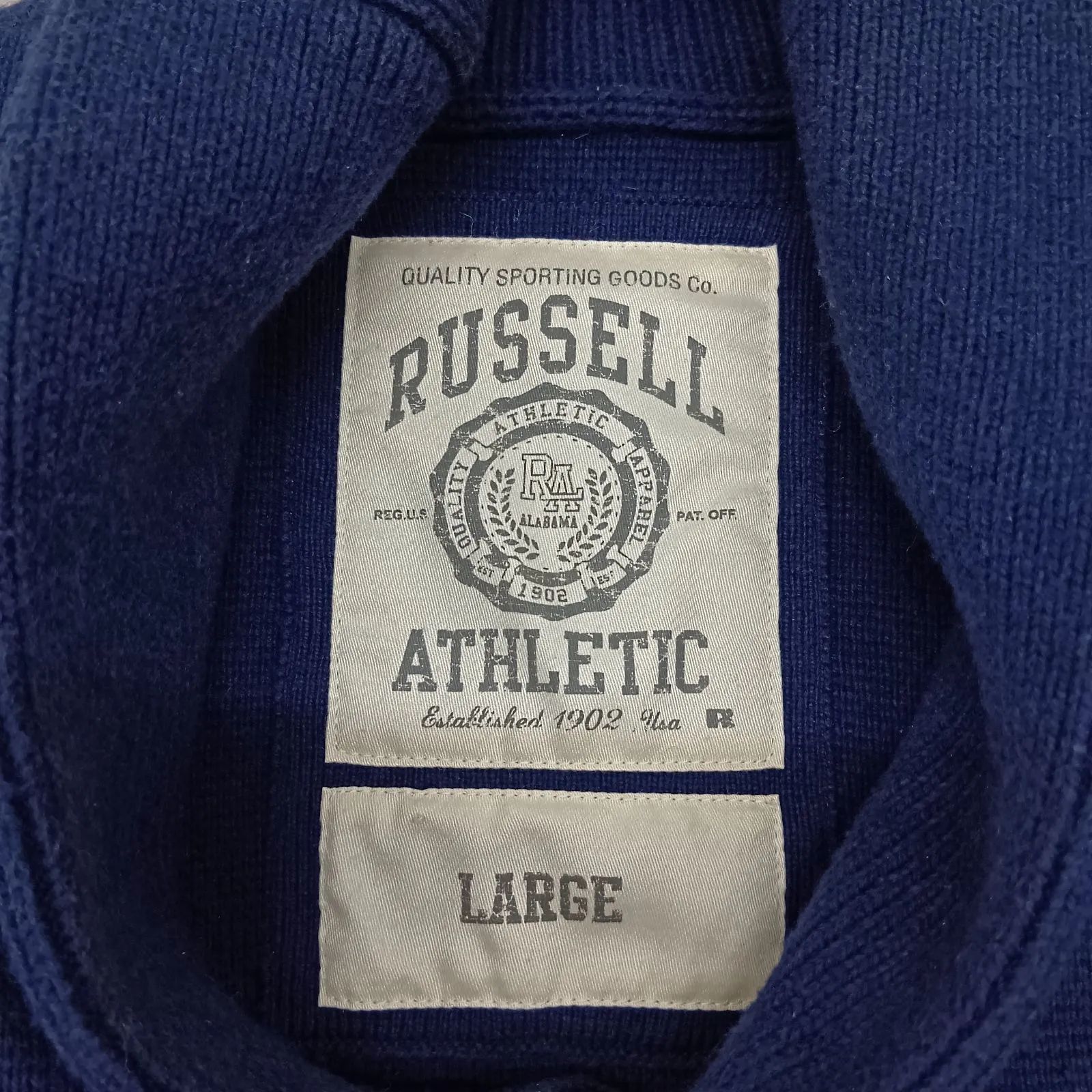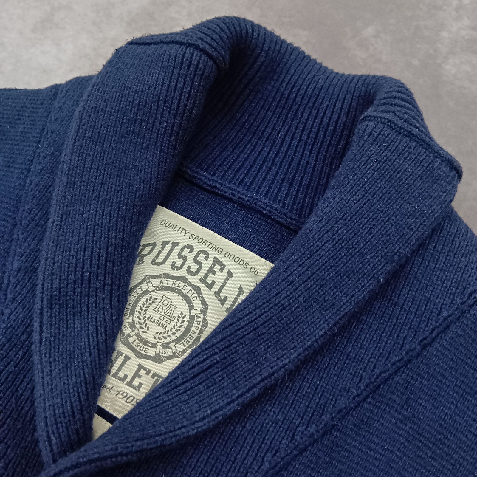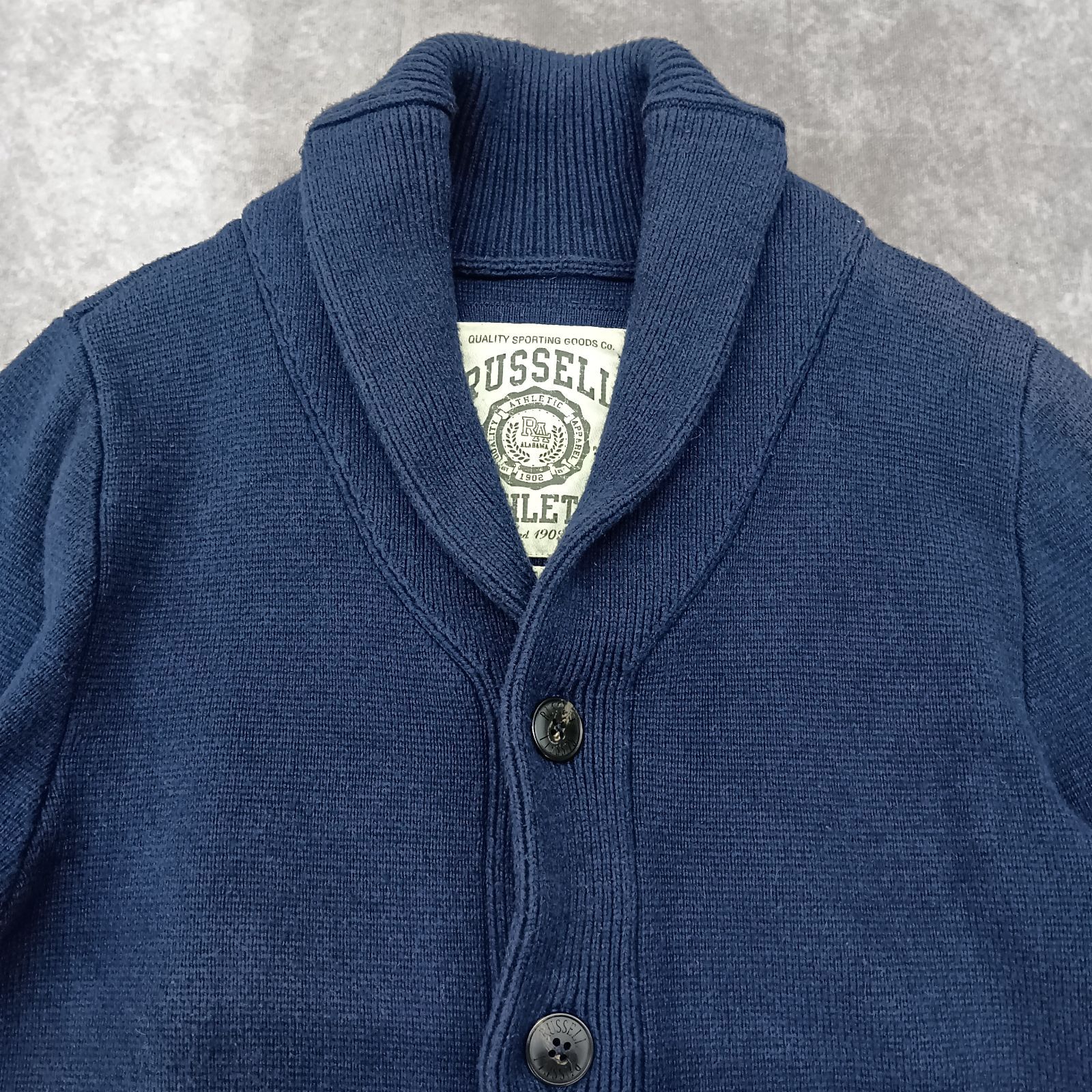 Russell Athletic LARGE サイズ ニットカーディガン ネイビー ショールカラー ラッセルアスレティック