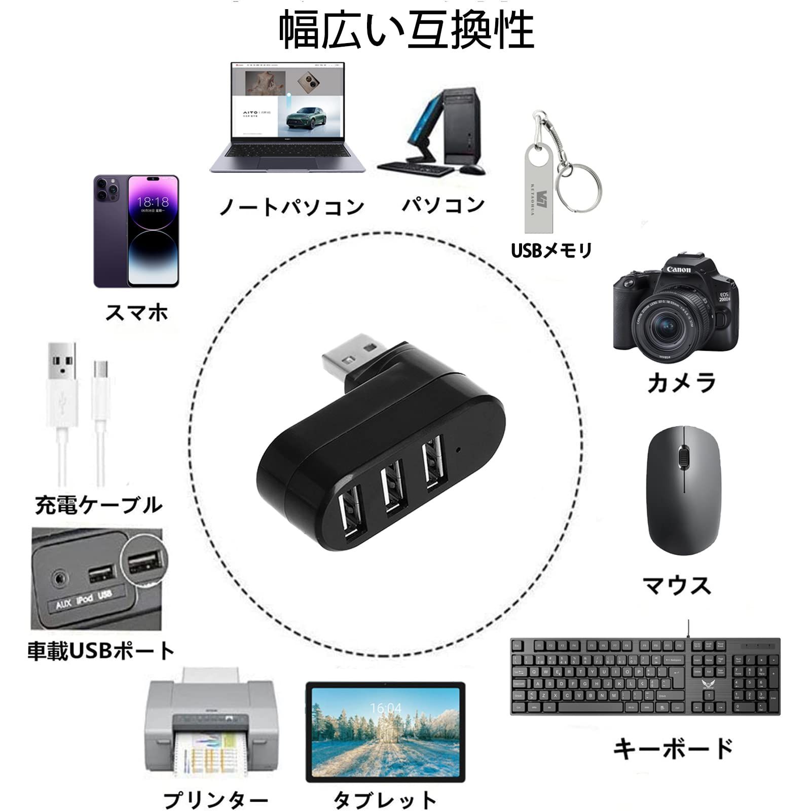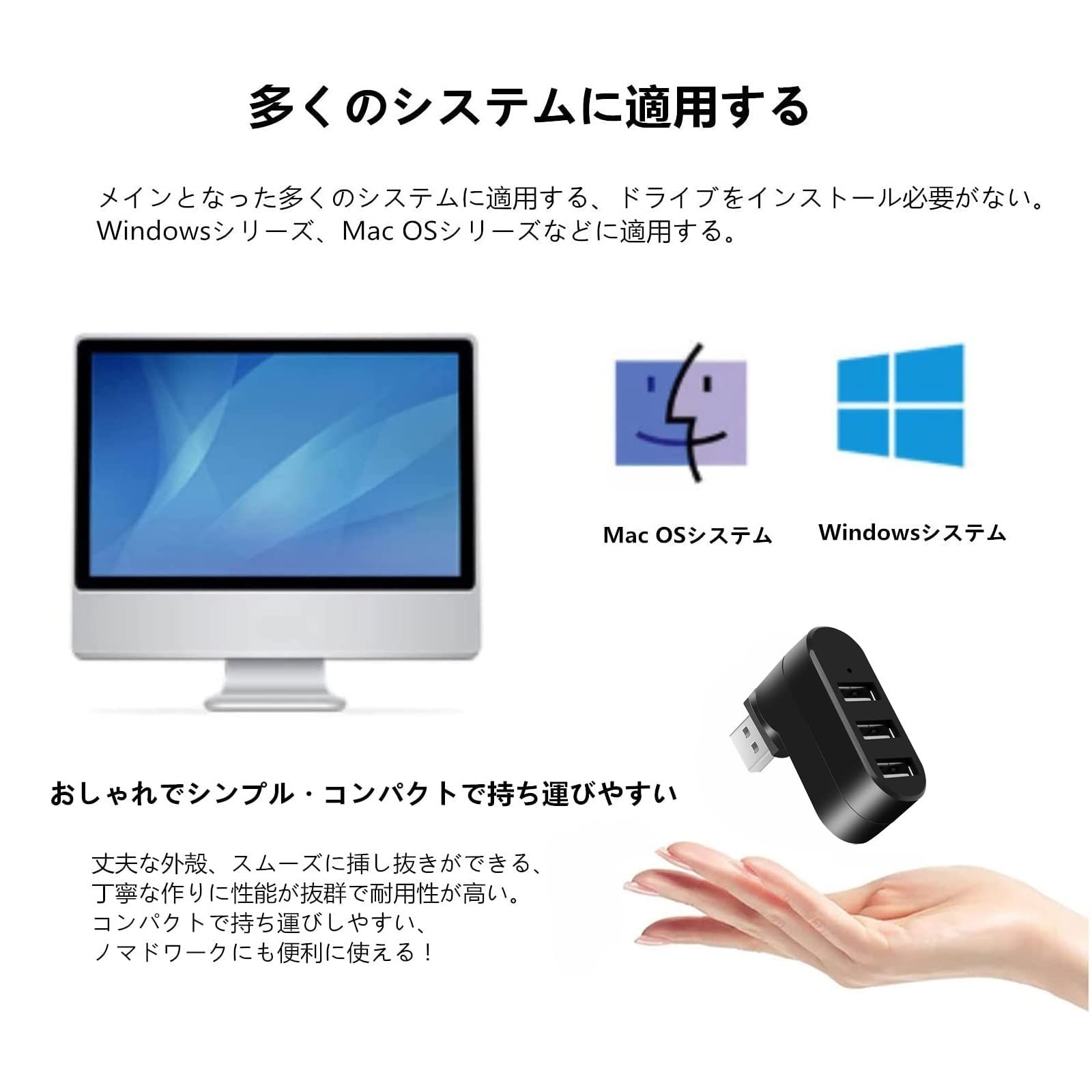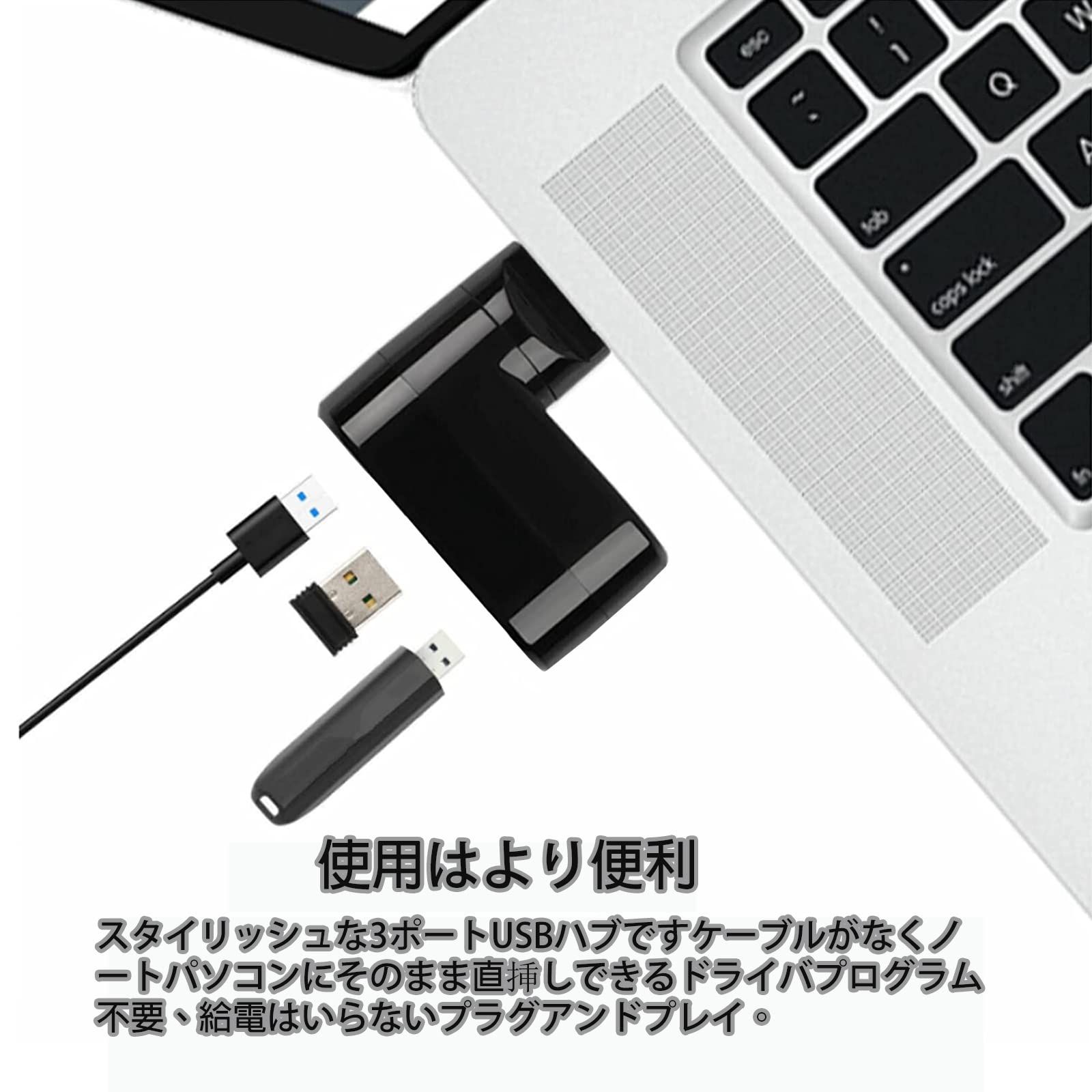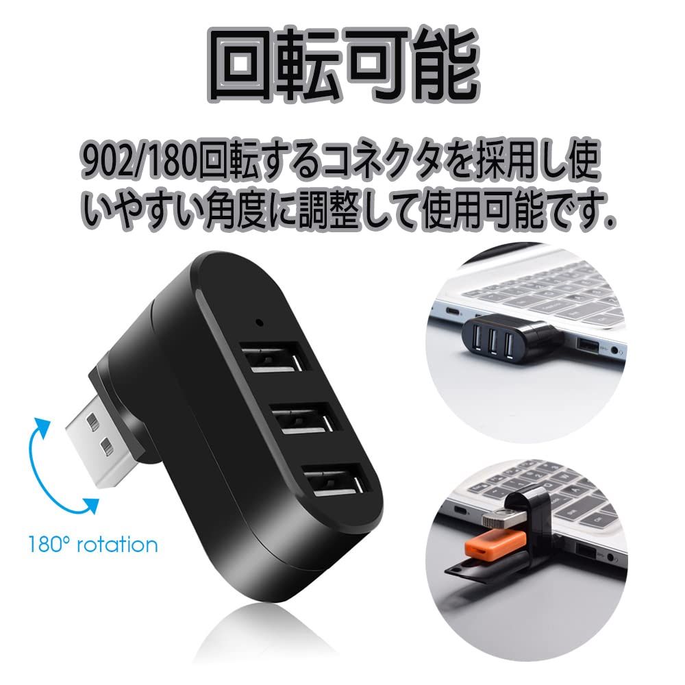 新品 ミニUSBハブ 3ポート USB2.0コンボハブ バスパワー 回転可能90°/ 180°usbハブ USBポート拡張 高速データ転送 軽量 携帯便利 (ブラック)