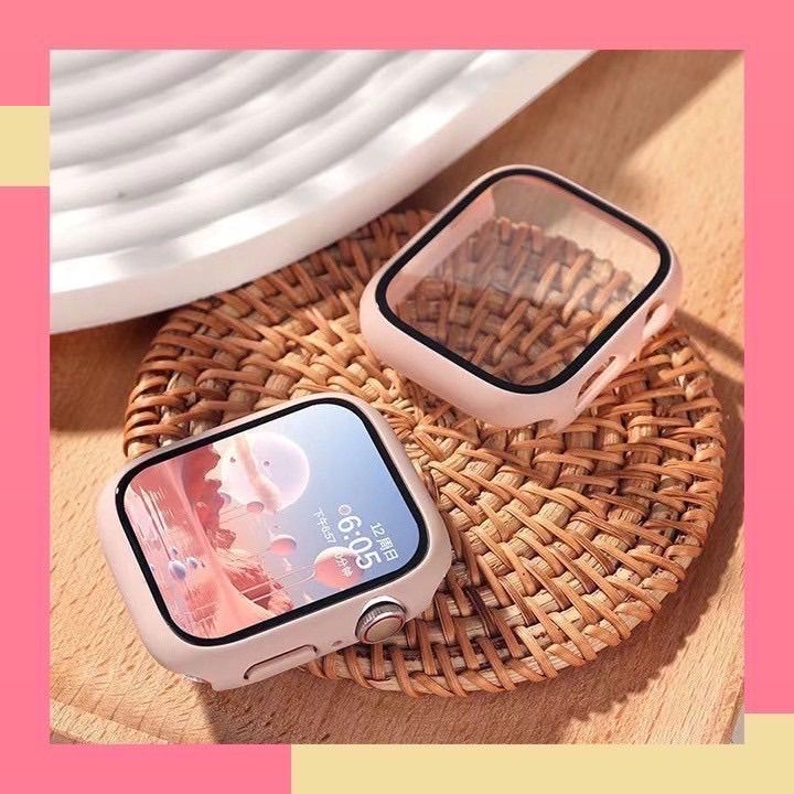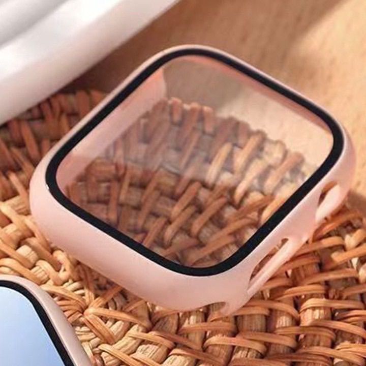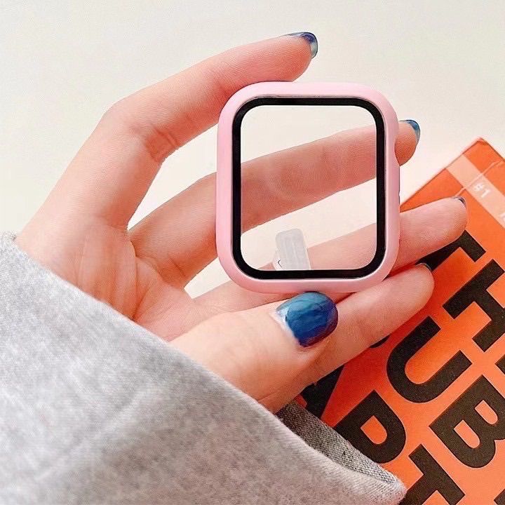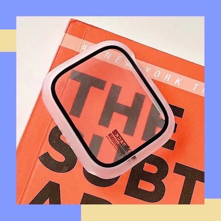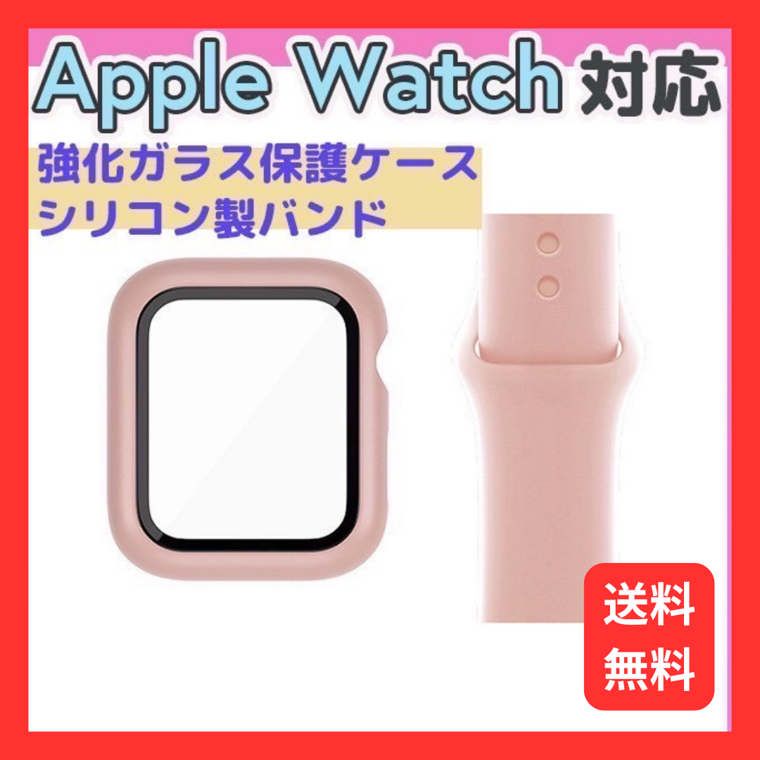 Apple シリコン製バンド Apple Watch(iWatch)対応 ピンク バンド 強化ガラス 一体型保護ケースセット