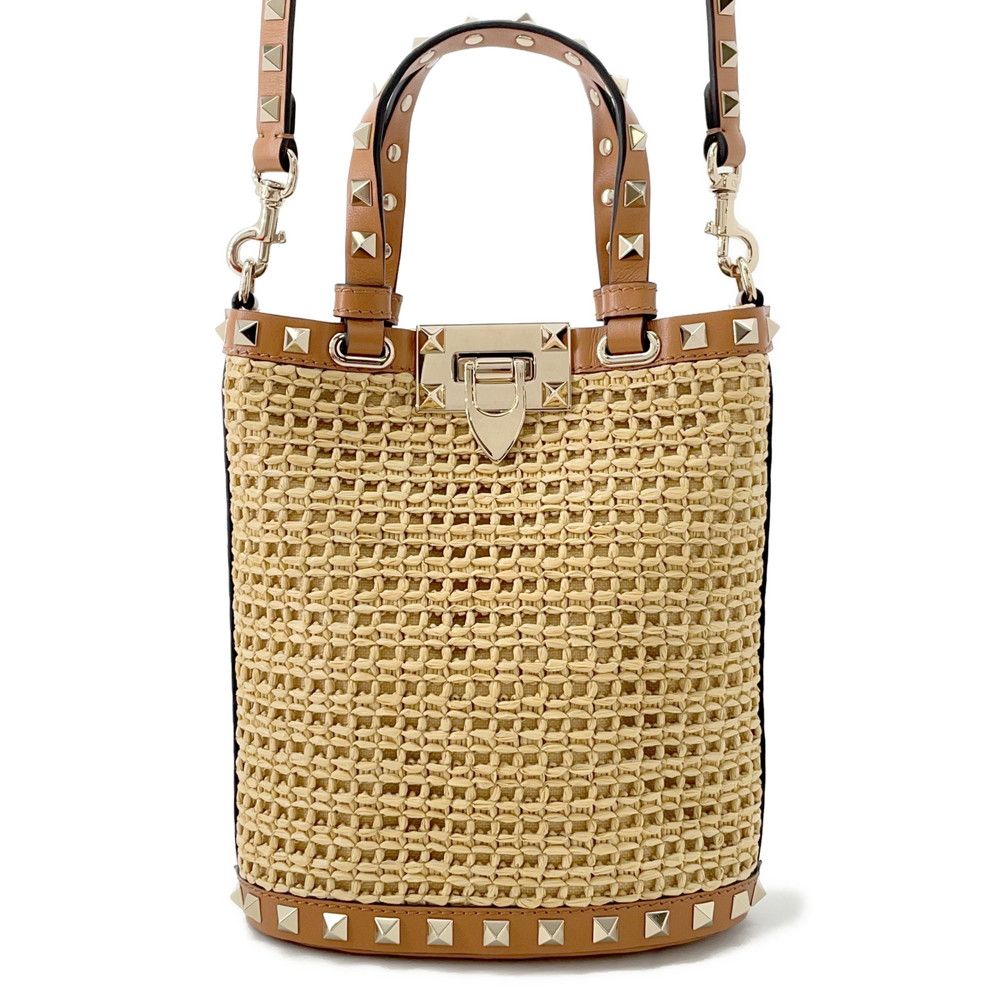 ヴァレンティノ・ガラヴァーニ ハンドバッグ ロックスタッズ バケットバッグ ラフィア レザー 4W2P0W31MZI 2way