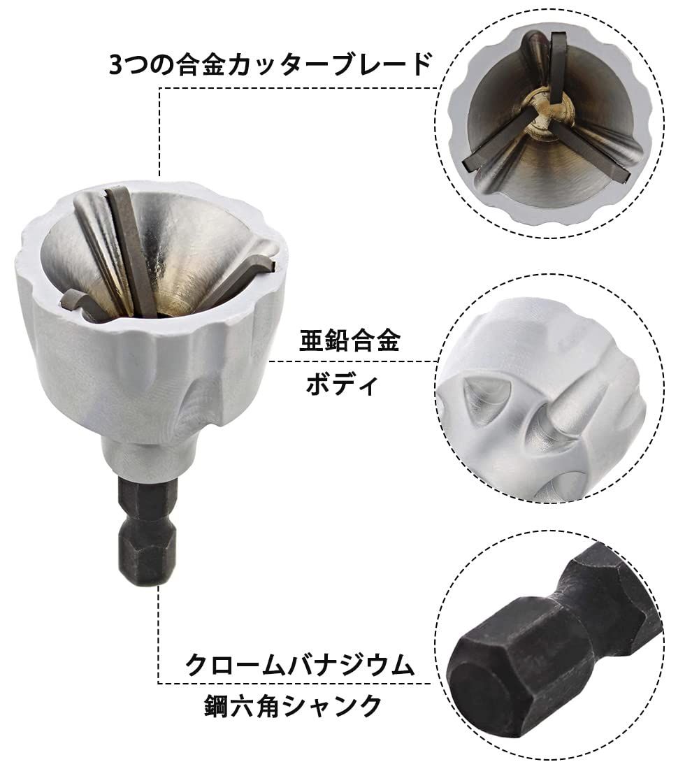 面取りカッター 金属 リーマー 面取り ネジバリ取り 寸切り バリ取り 面取りビット ネジバリ面取り 3mm-19mmに適合