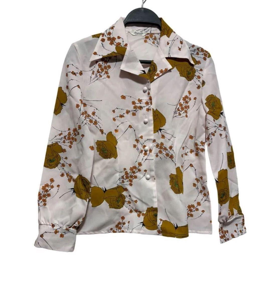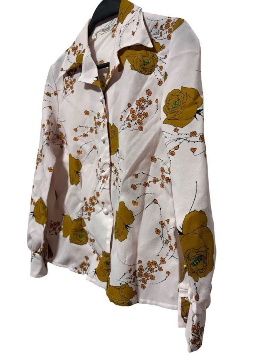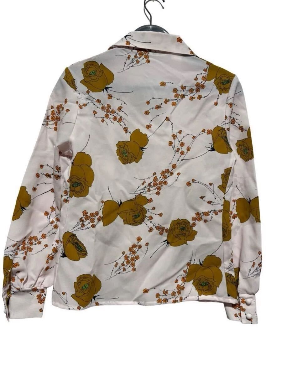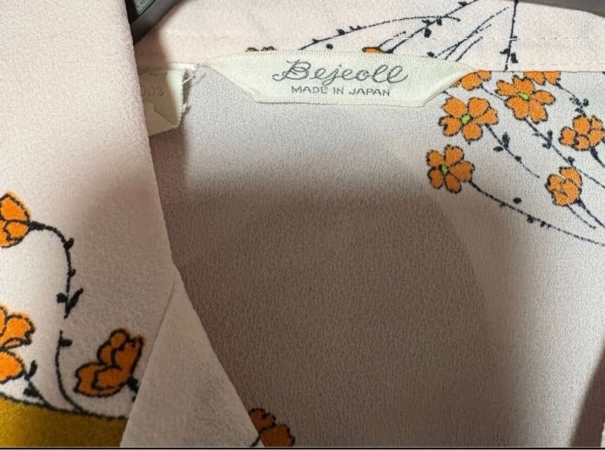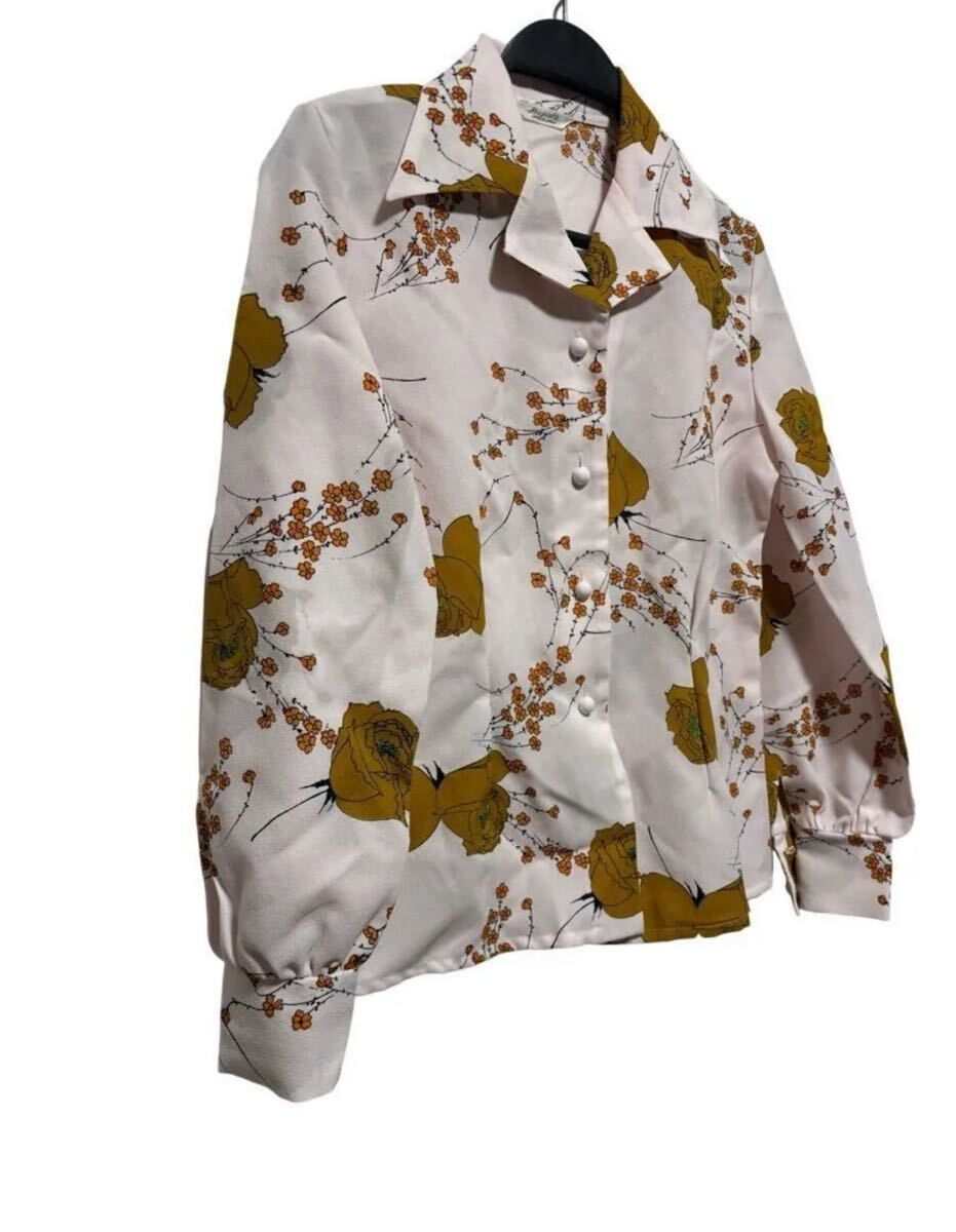 bejeoll花柄 レトロ 長袖 ブラウス トップス Mサイズ くるみボタン レディース 薄いピンク 昭和レトロ 平成レトロ シャツ オープンカラー