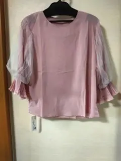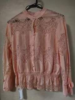薄めのピンク色にブラウンの花柄の長袖ブラウスです。