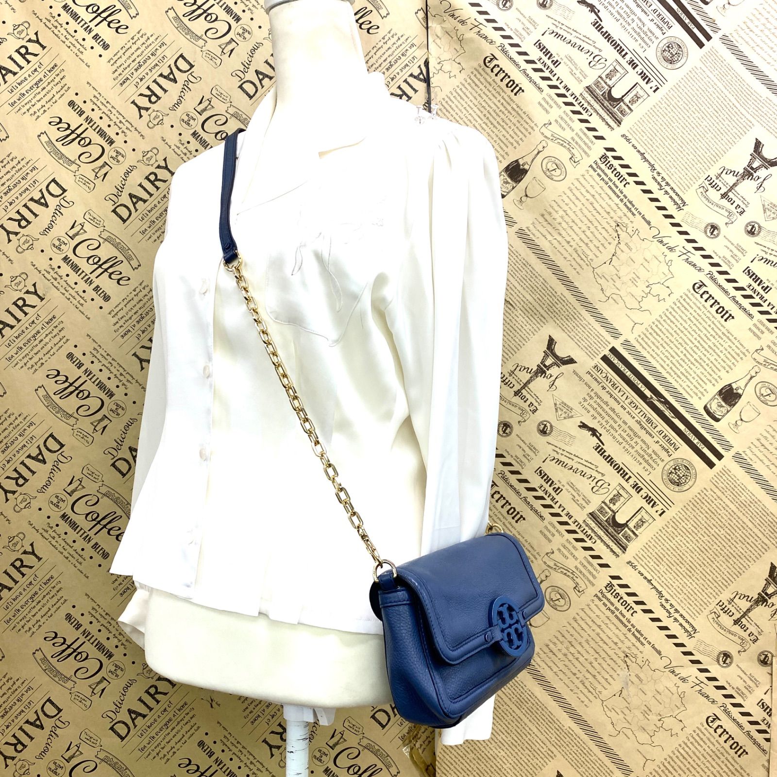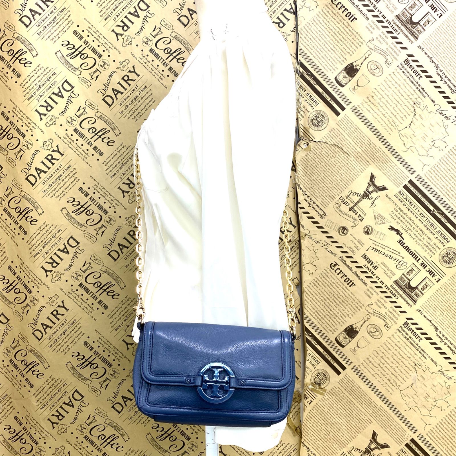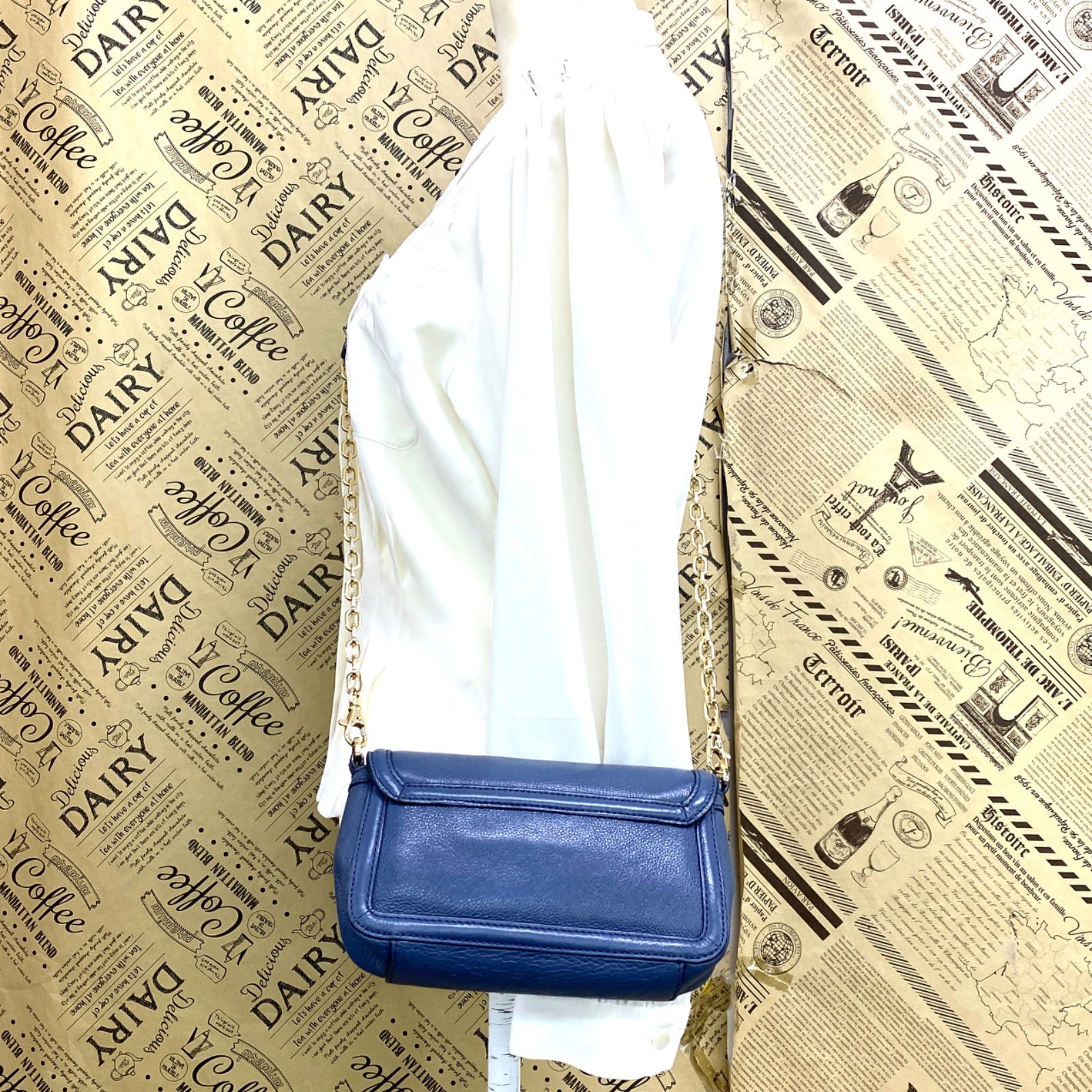 トリーバーチ ショルダーバッグ チェーン 革 ポシェット ネイビー FY235