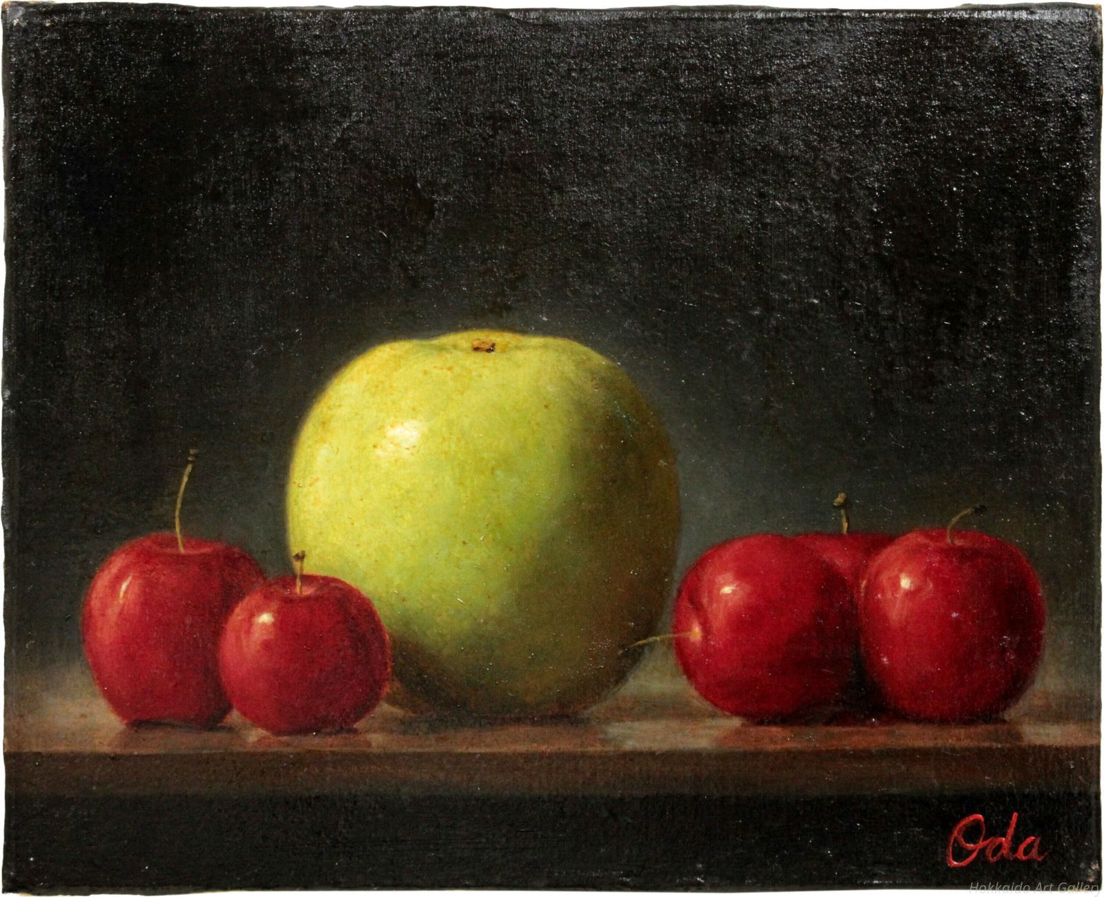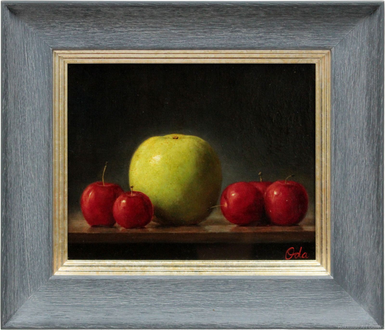 織田里見 「青い林檎と赤い林檎」 油絵・油彩画 絵画