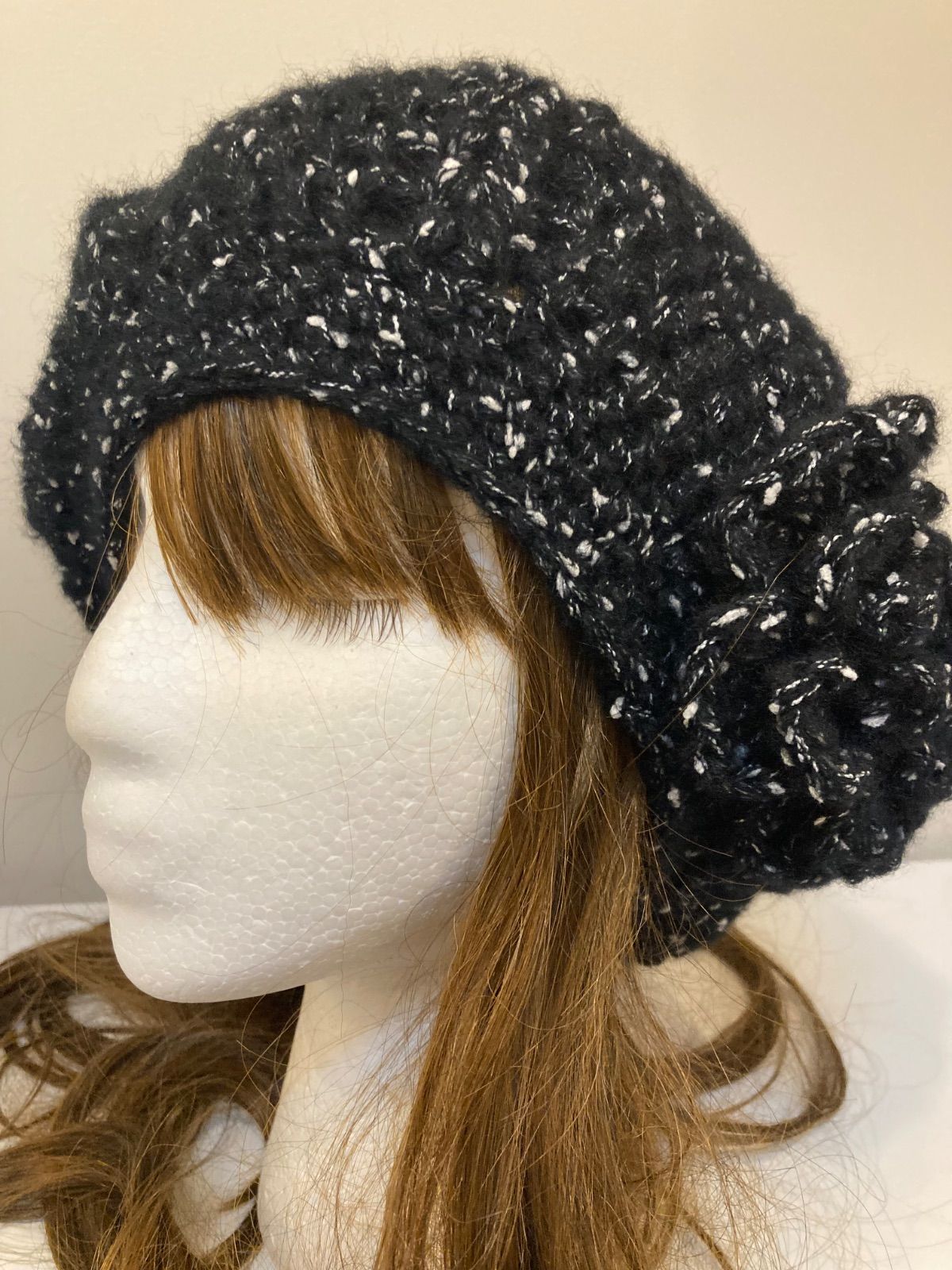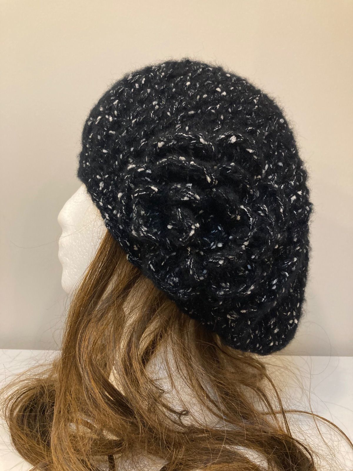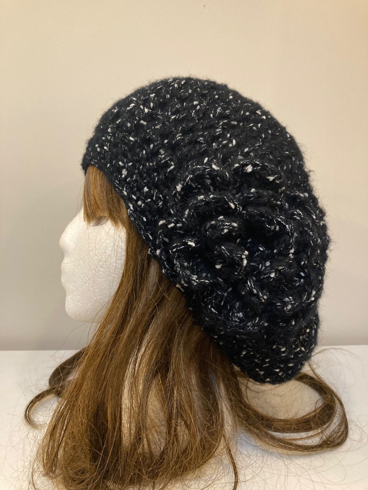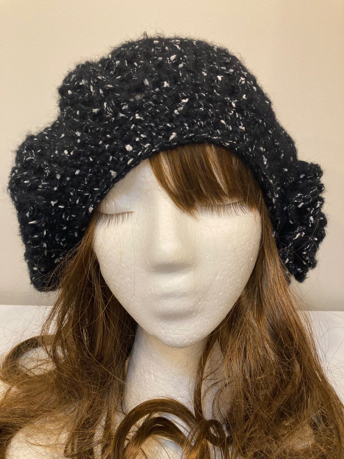 ハンドメイドブラックモヘア パールネップ ベレー帽 ニット帽 ビーニー