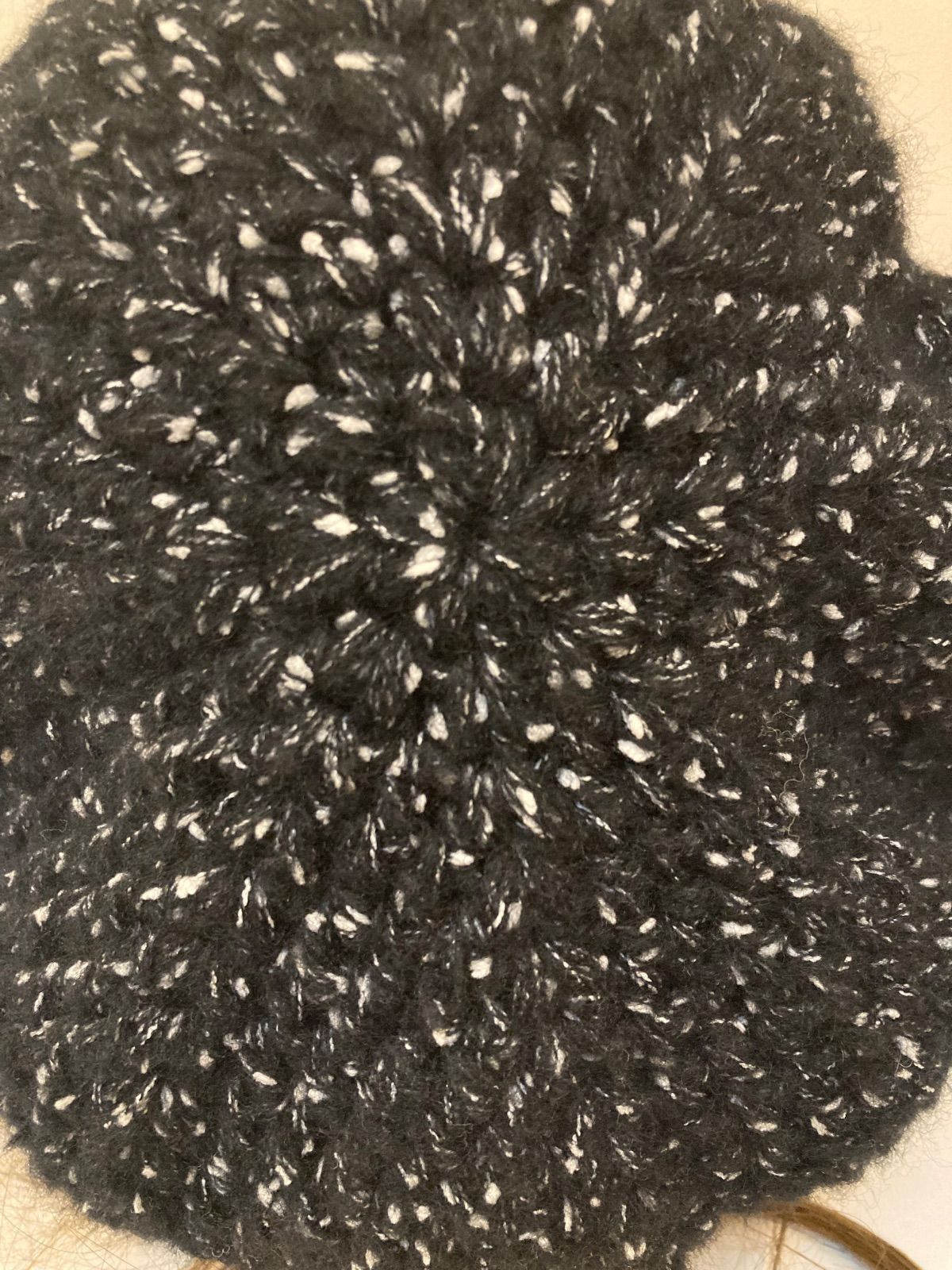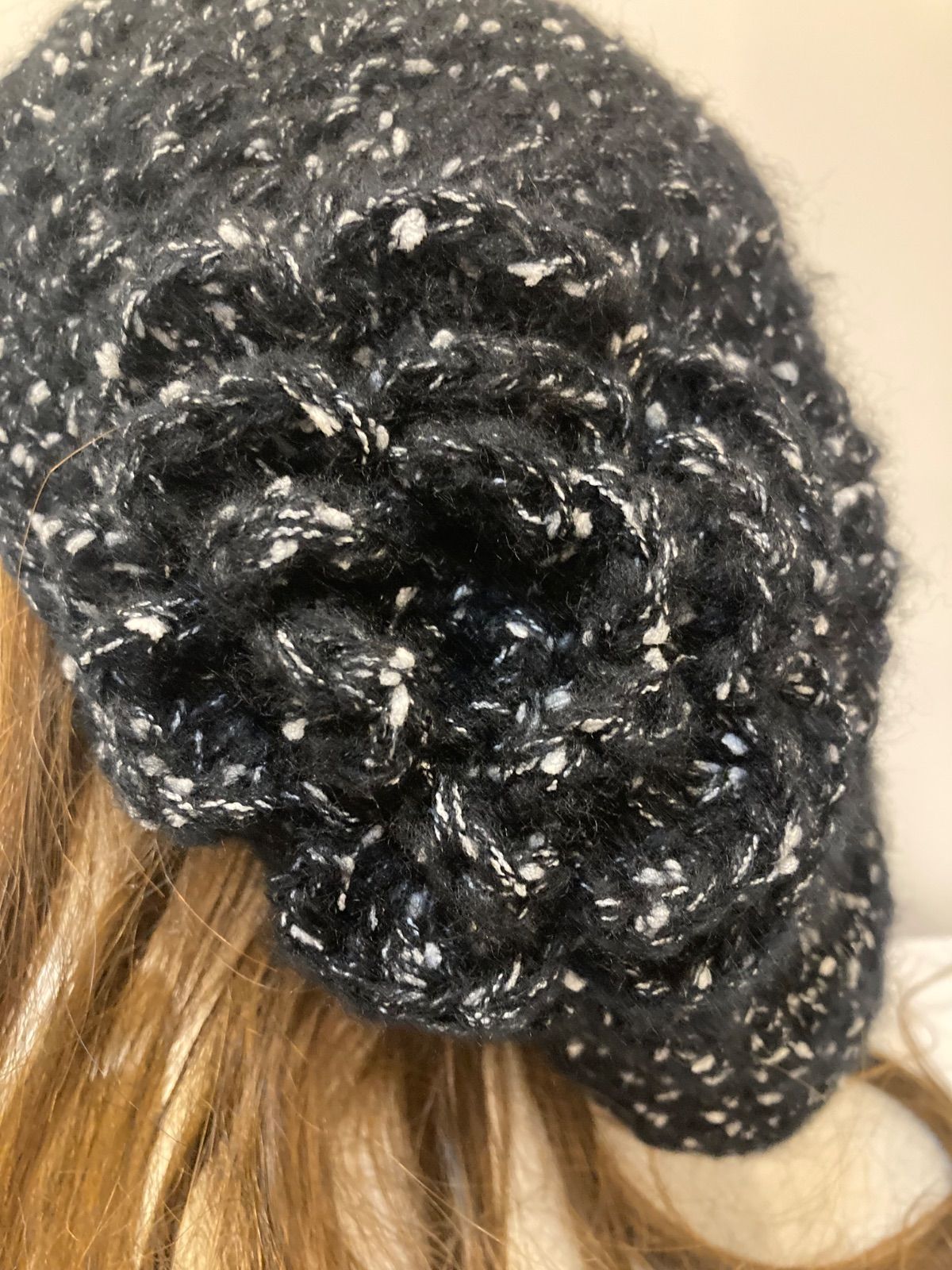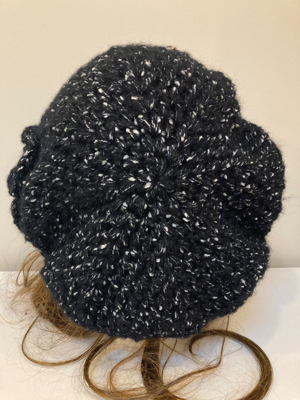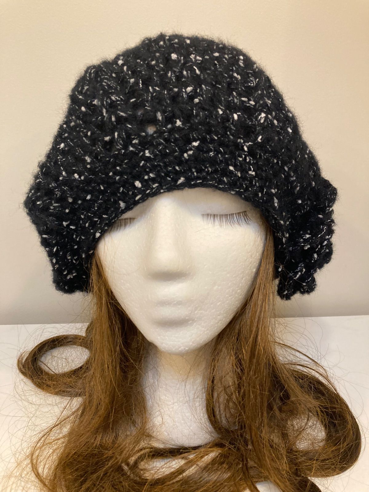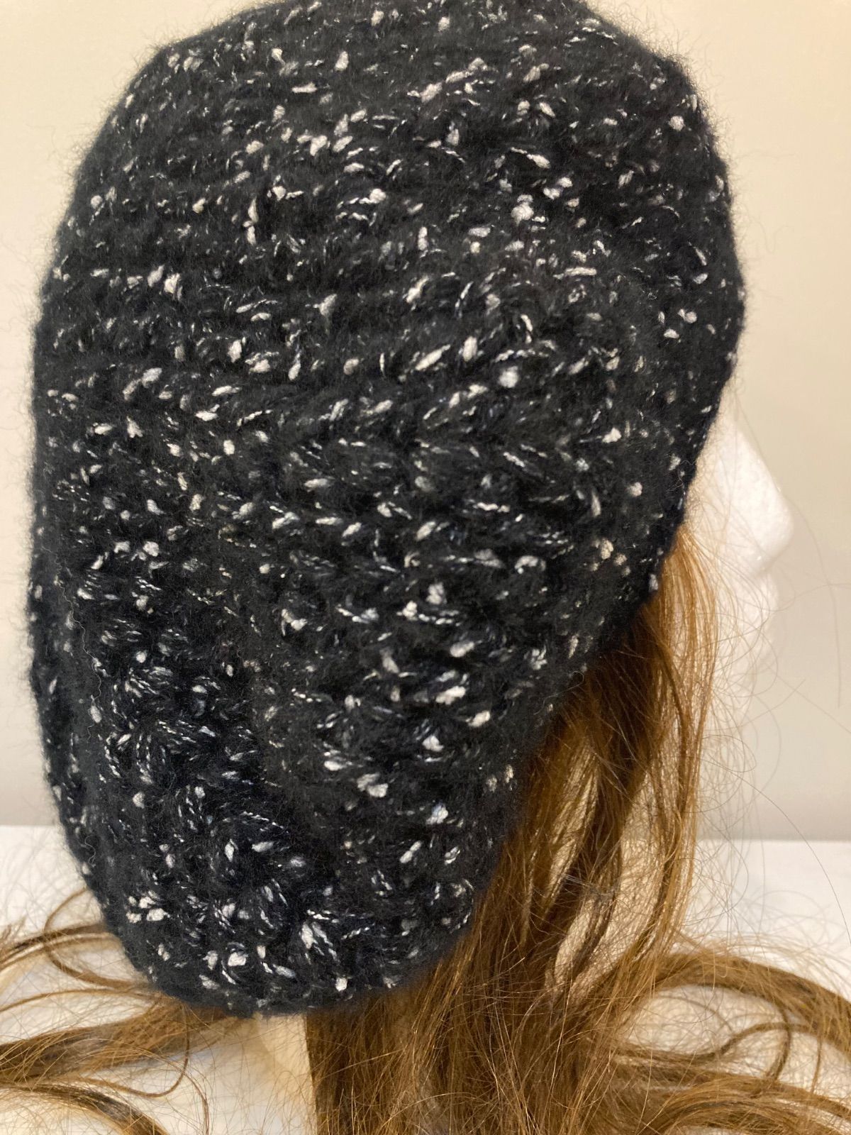 ハンドメイドブラックモヘア パールネップ ベレー帽 ニット帽 ビーニー