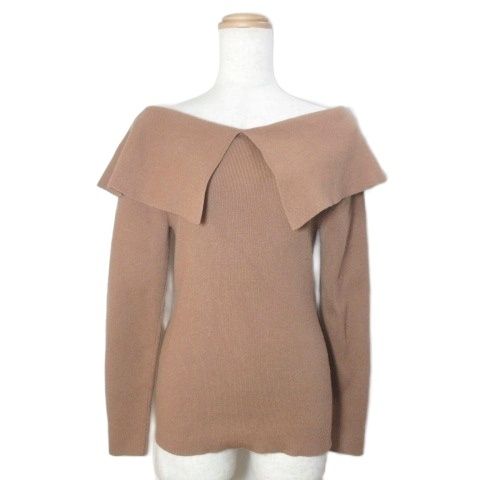 SAISON DE PAPILLON セゾンドパピヨン ニット セーター オフショルダー 長袖 厚手 ビッグカラー M 茶 ブラウン /X