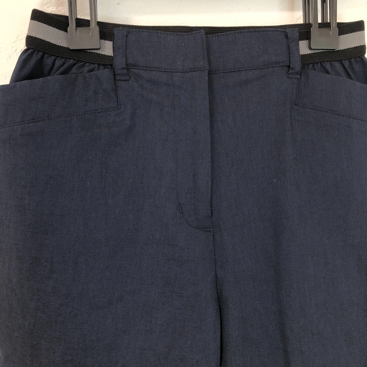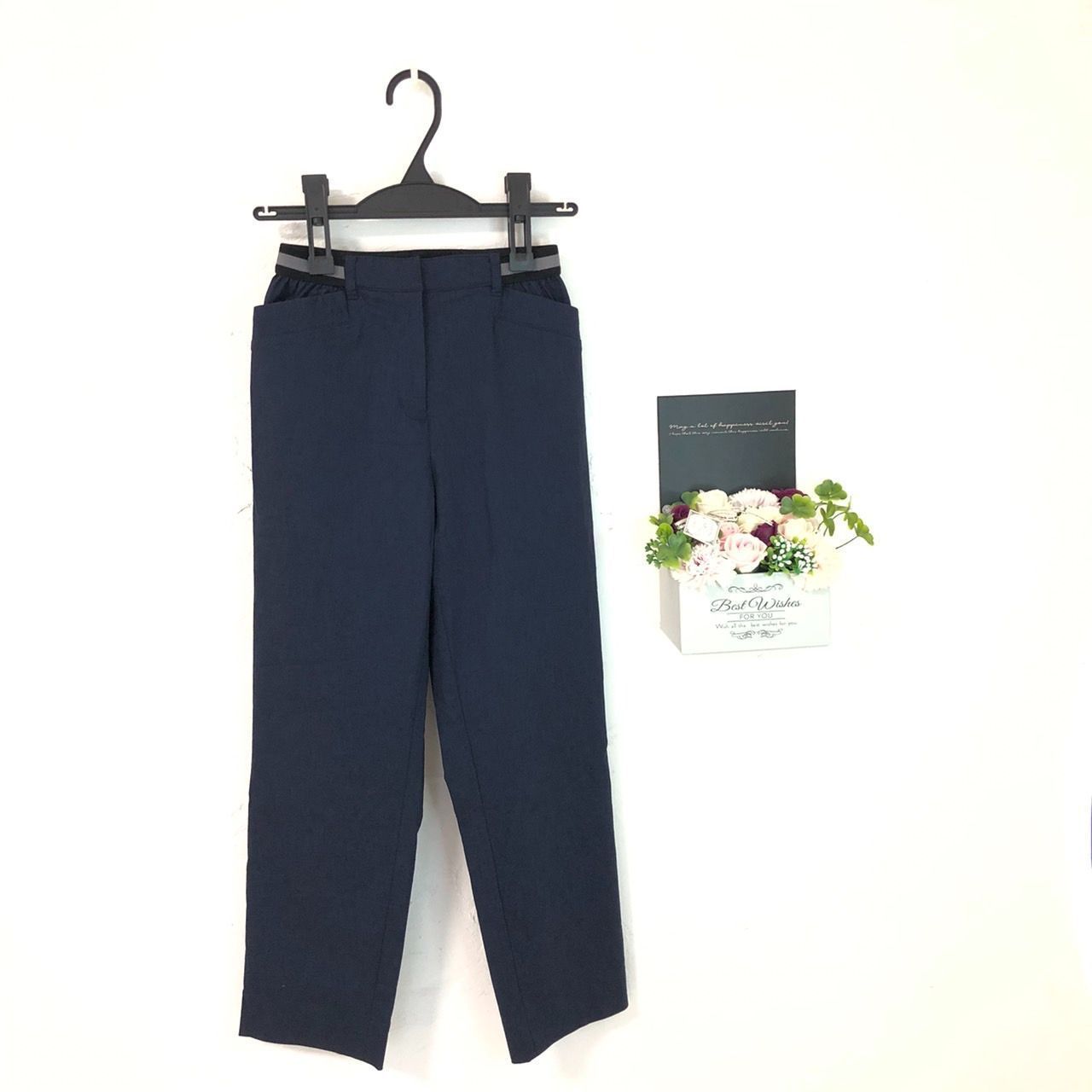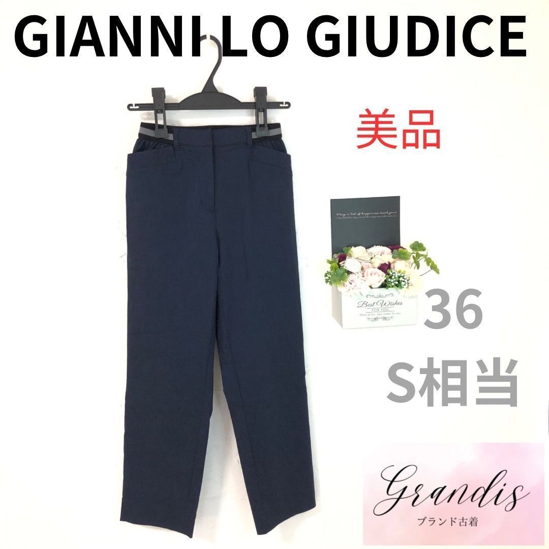 ★美品A★ GIANNI LO GIUDICE ジャンニロジュディチェ ボトム ストレートパンツ ウエストゴム ポケット ストレッチ素材 薄手生地 サイズ36(S相当) 紺色 レディース