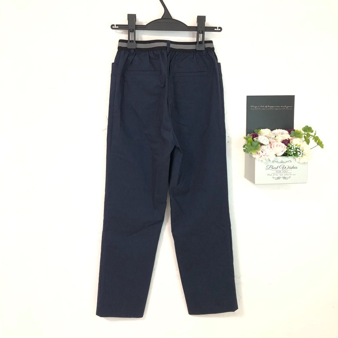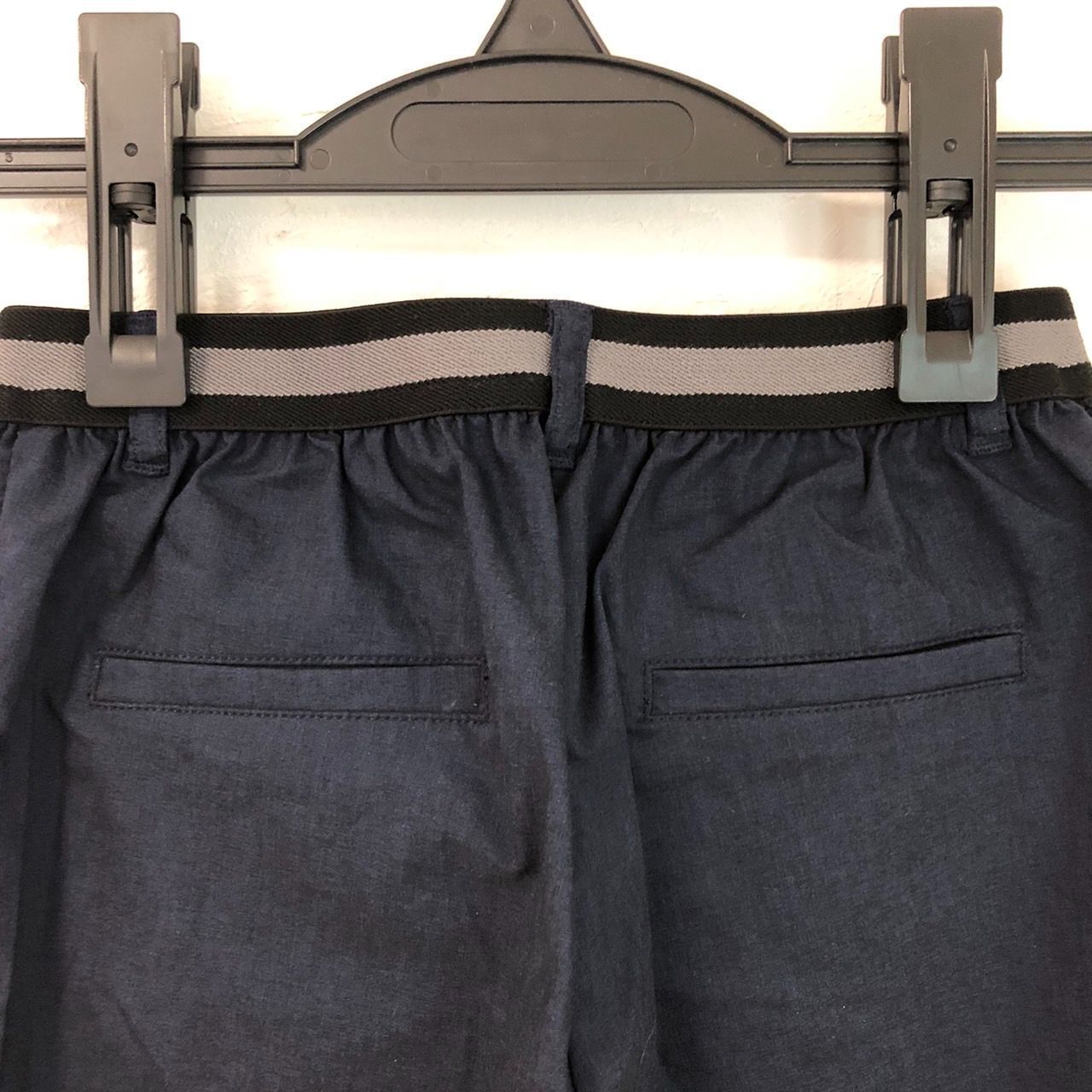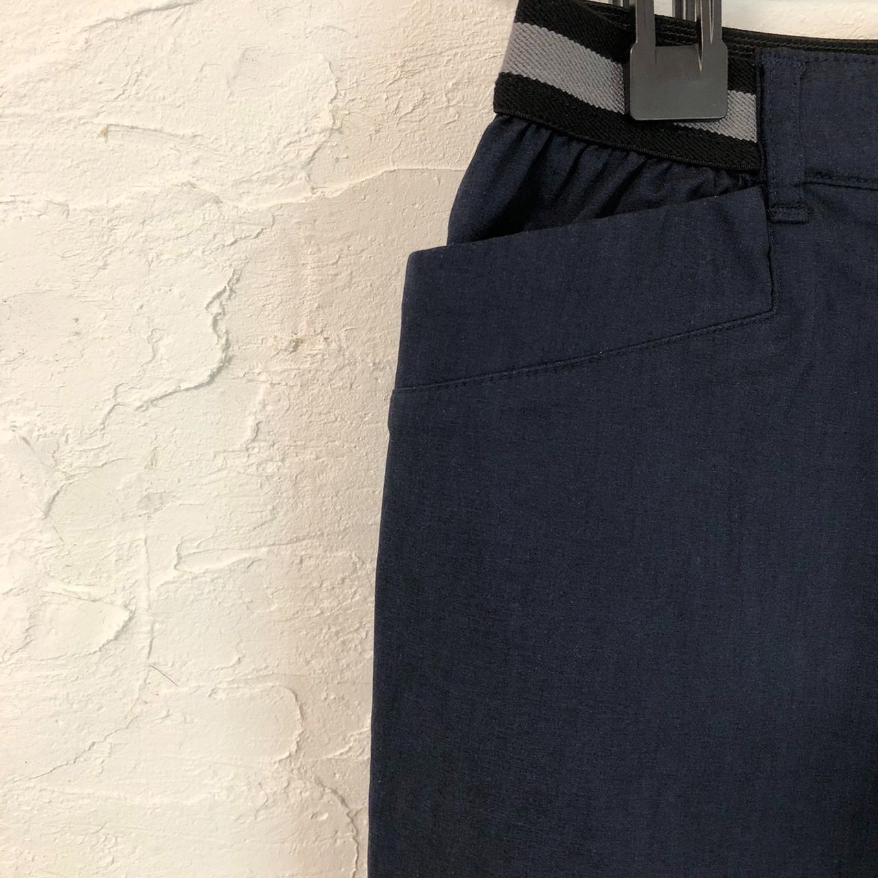 ★美品A★ GIANNI LO GIUDICE ジャンニロジュディチェ ボトム ストレートパンツ ウエストゴム ポケット ストレッチ素材 薄手生地 サイズ36(S相当) 紺色 レディース
