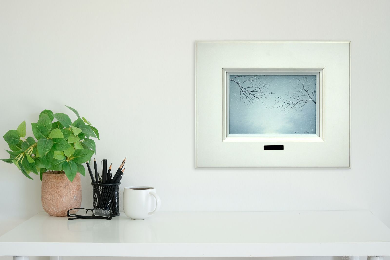 静かに降り続く雪の中、寄り添う二羽の鳥。その慎ましい姿が、冬の情景に奥深い趣と穏やかな温もりをもたらしています。