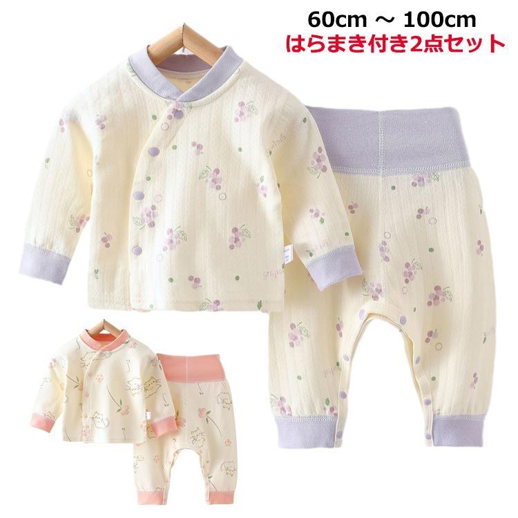 2点セット ベビーパジャマ 腹巻付き 熊 ねこ 猫 花 葡萄 前開き 上下セット 長袖 パジャマ 70 80 90 ベビー 寝具 セットアップ ベビー服 パジャマ ルームウェア ベビーパジャマ ベビー#goudoudou5582