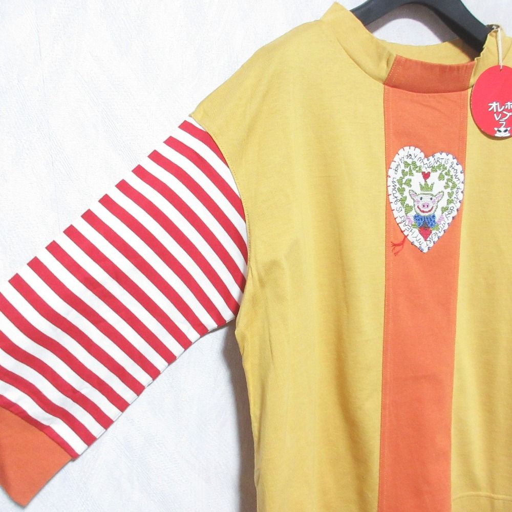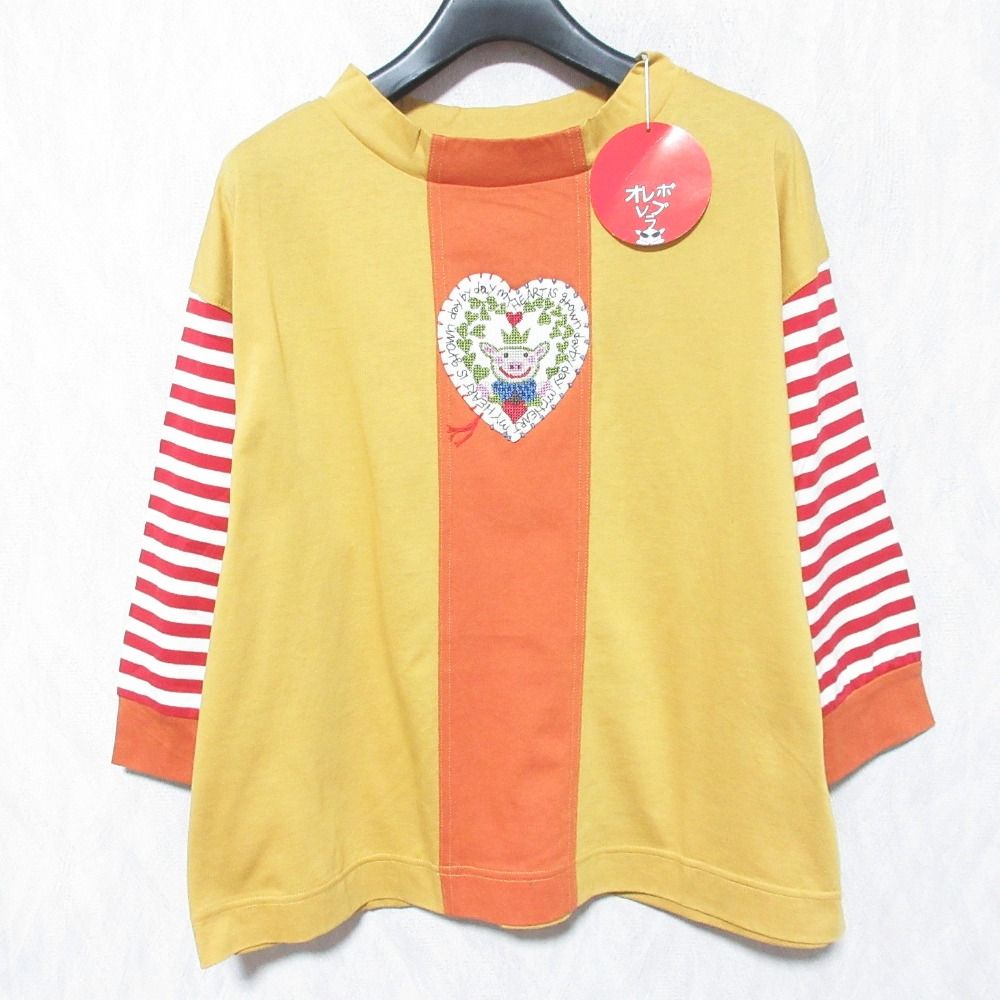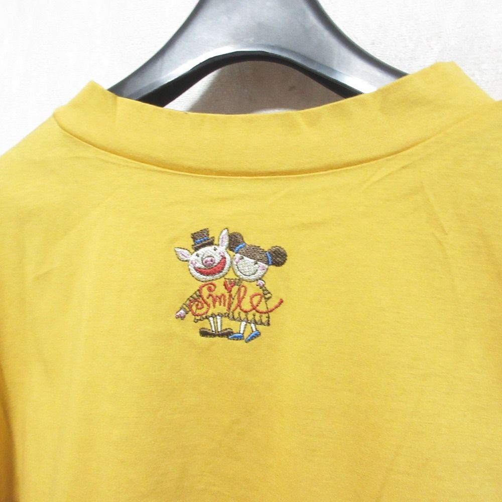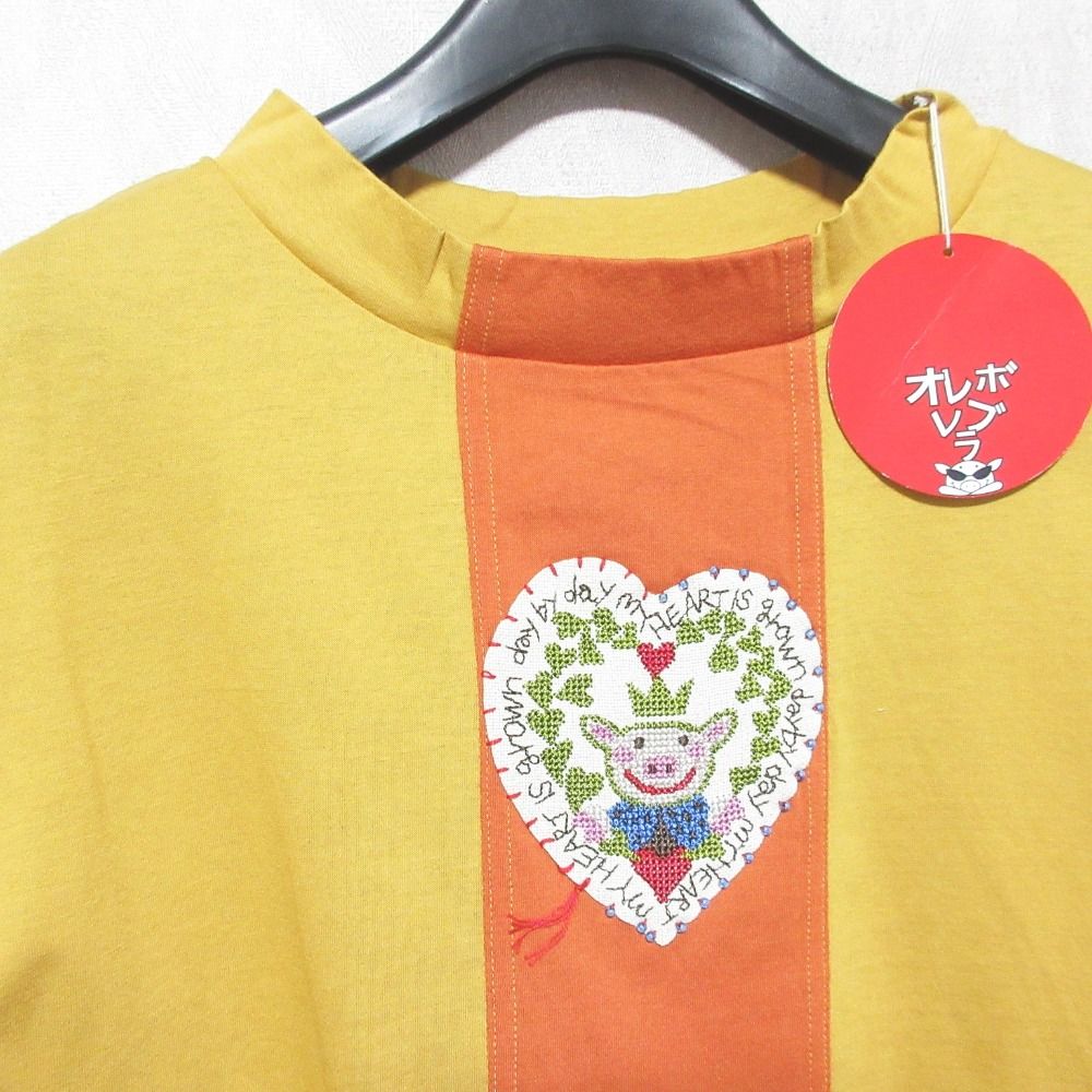 未使用 OLLEBOREBLA オレボレブラ アルベロベロ ぶたさん刺繍 ハイネックカットソー サイズM イエロー オレンジ レディース 古着 中古 USED