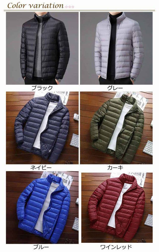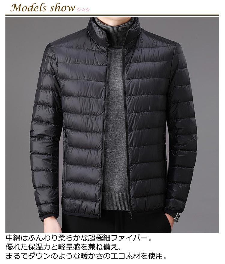 中綿ジャケット メンズ ファイバー ダウンジャケット インナーダウン ライトダウン ジャケット スタンドカラー 立て襟 細身 軽量 薄手 防寒 保温 暖かい ファイバーダウン インナージャケット 中綿#erika7566