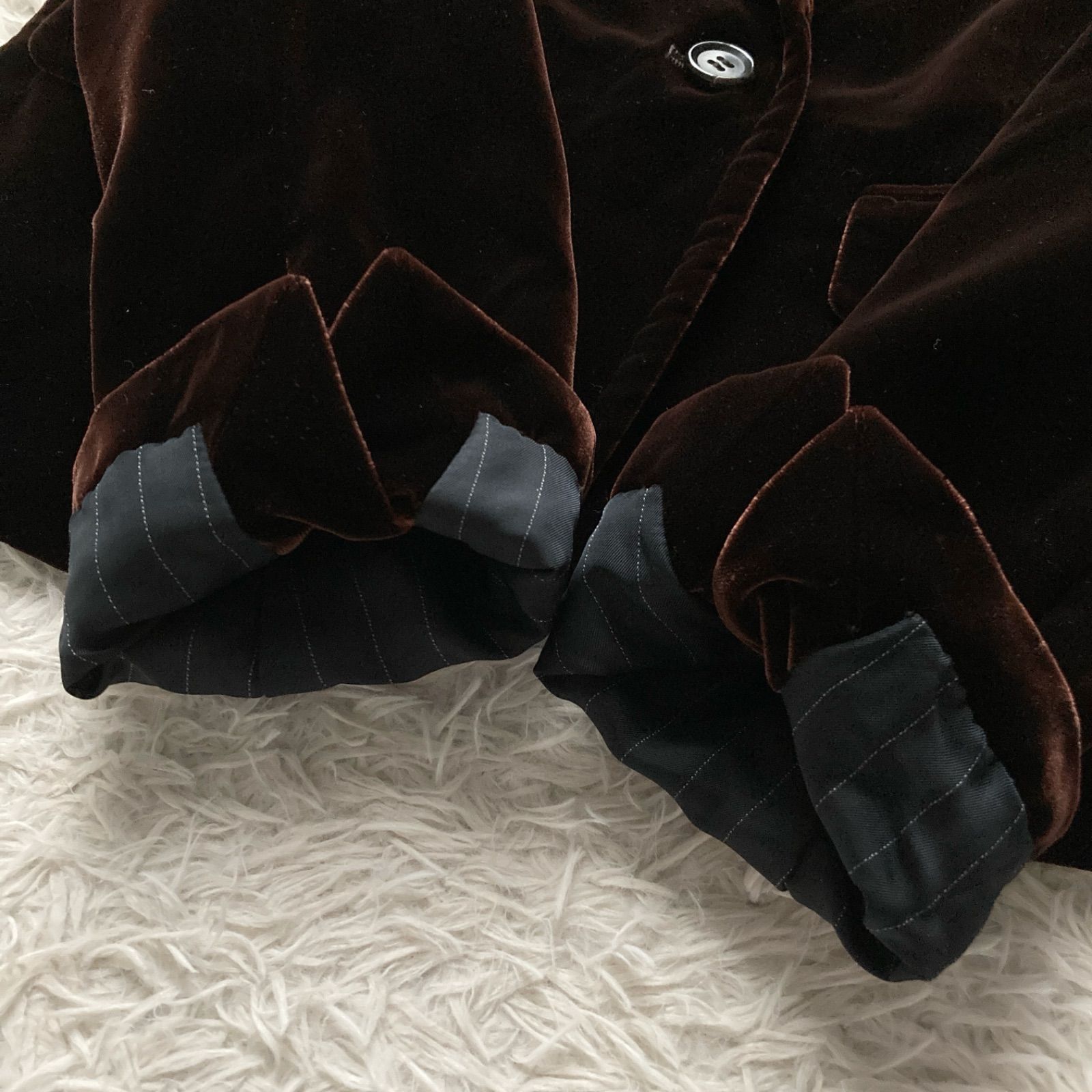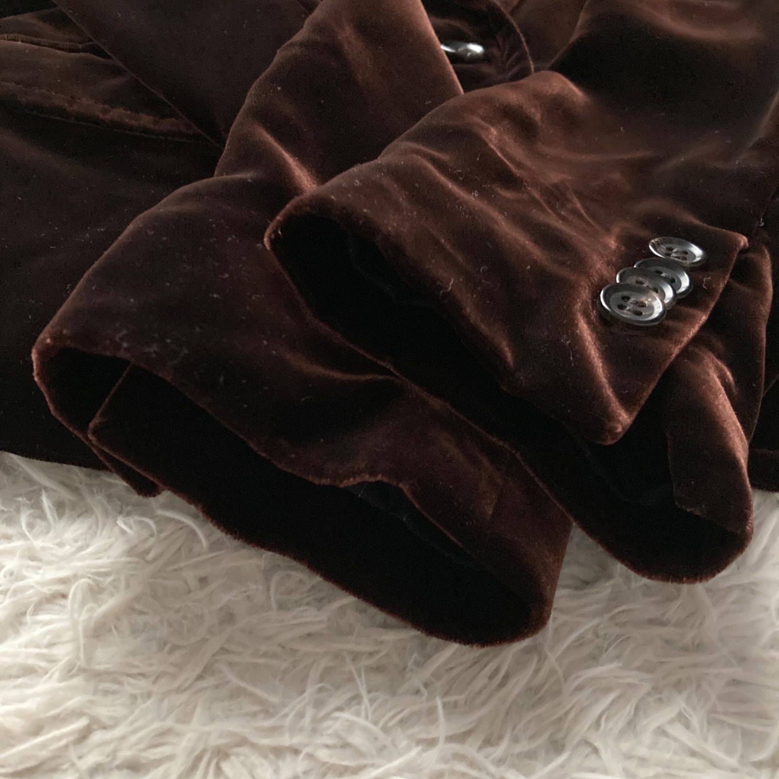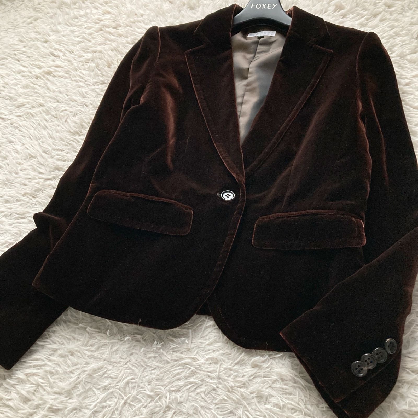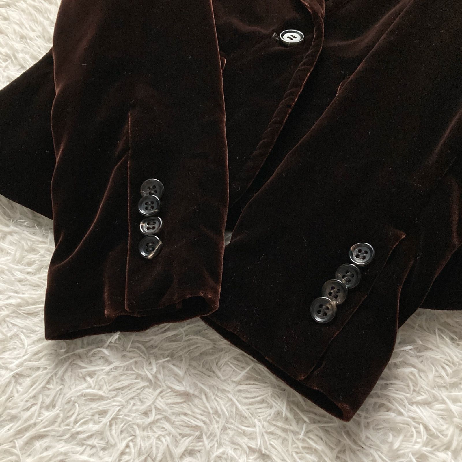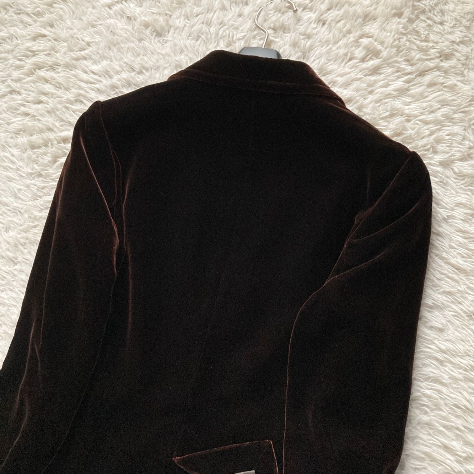 美品 BARNEYS NEWYORK バーニーズニューヨーク 上品 高級感 ベロア ベルベット テーラードジャケット スーツ 極上 ダークブラウン 茶色 レディース 40サイズ シルク レーヨン パーティー ビジネス 羽織り