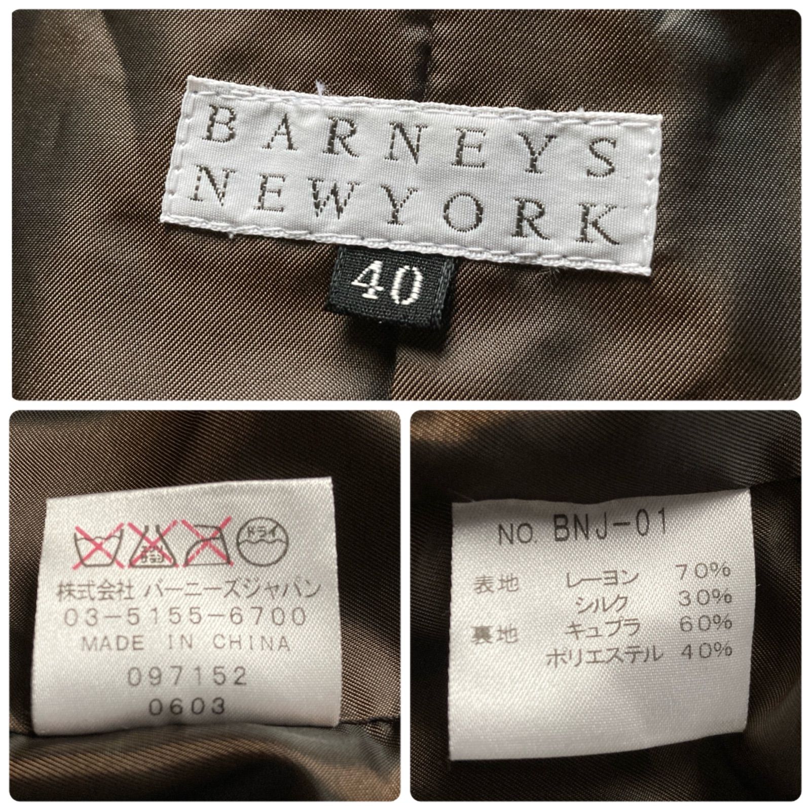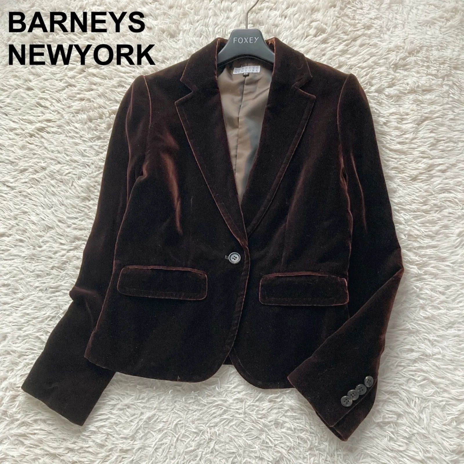 美品 BARNEYS NEWYORK バーニーズニューヨーク 上品 高級感 ベロア ベルベット テーラードジャケット スーツ シルク混 ダークブラウン 茶色 レディース 40サイズ シルク レーヨン パーティー ビジネス 羽織り