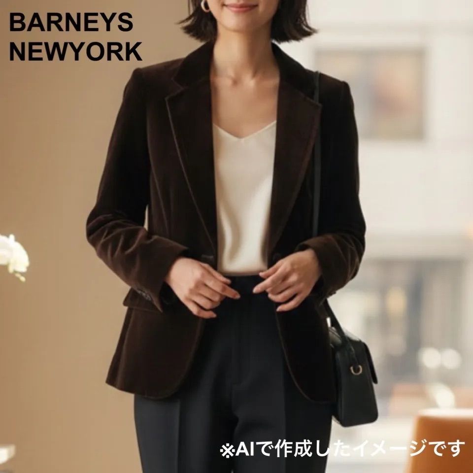 大人の女性に極上の高級感を与える、バーニーズニューヨークのベロアテーラードジャケット。